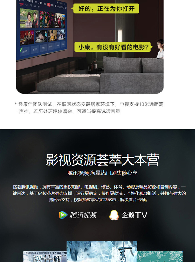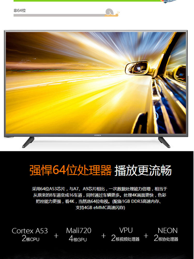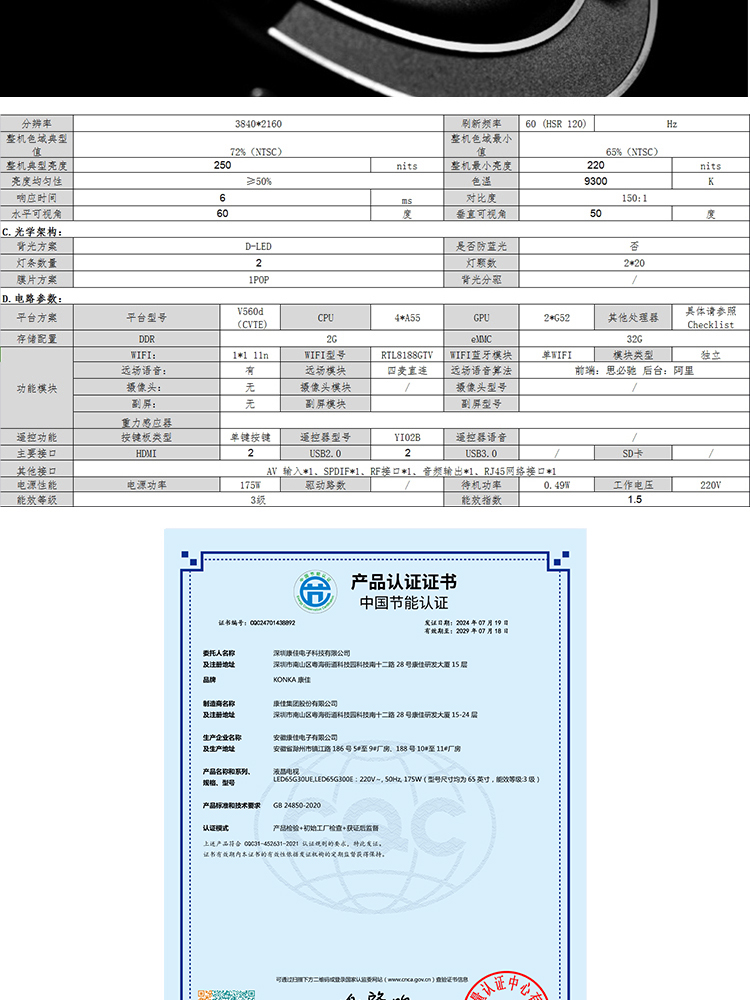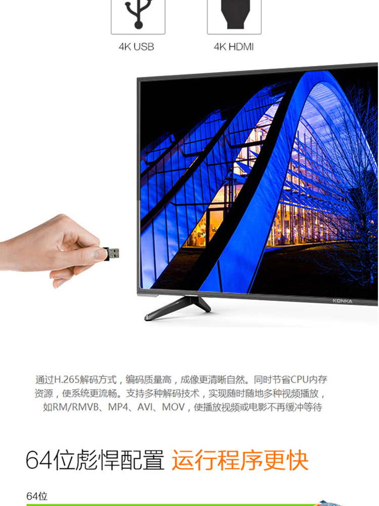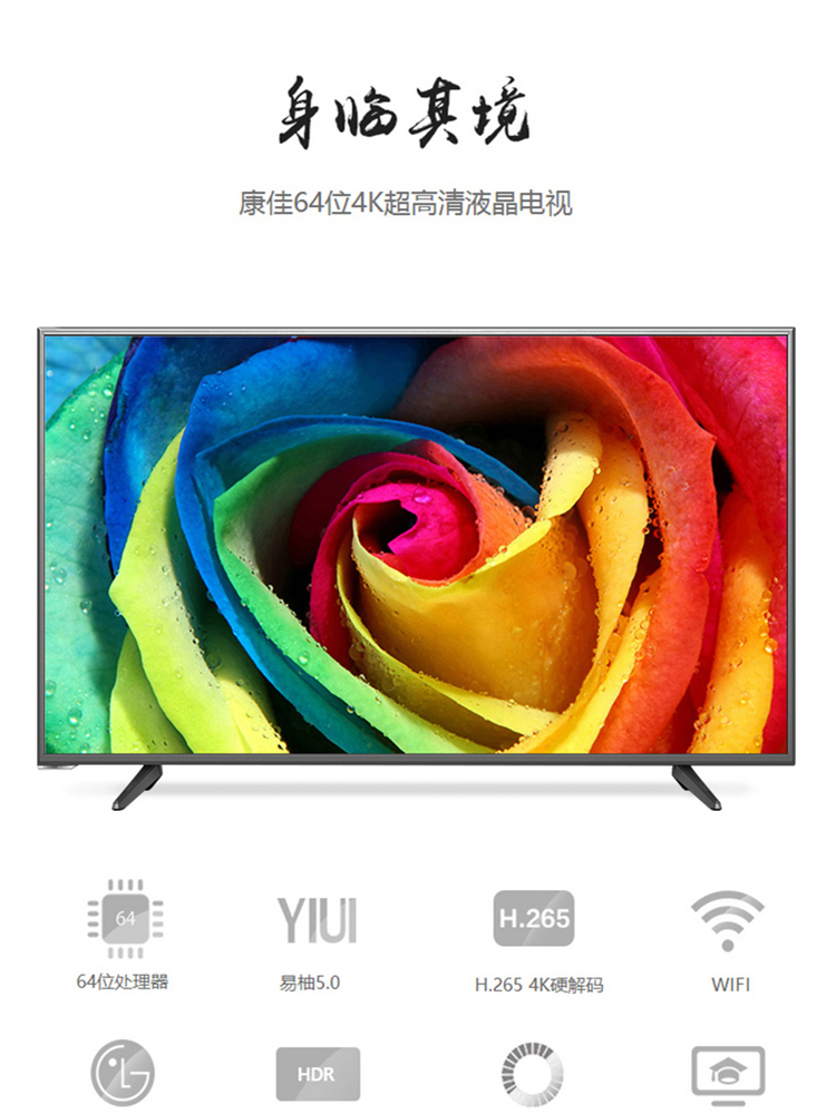 商品名称:J-《热评10000+》 康佳KONKA电视 65英寸 4K超高清液晶智能电视LED65G30UE 黑色 2+32G 65G30UE