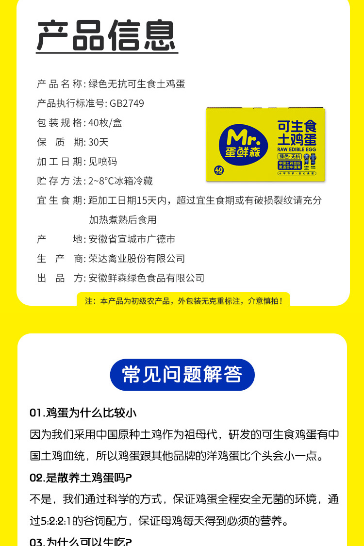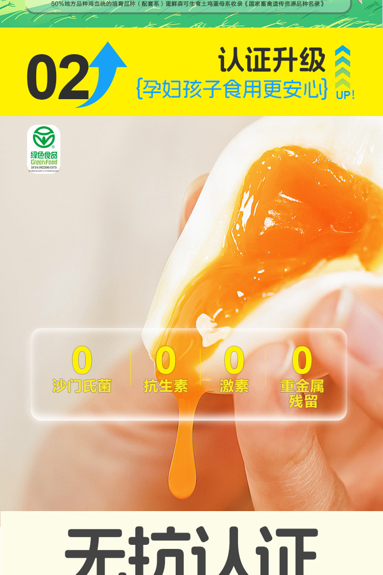 商品名称:蛋鲜森绿色无抗可生食土鸡蛋 40枚/1600g(含手提)ZH324