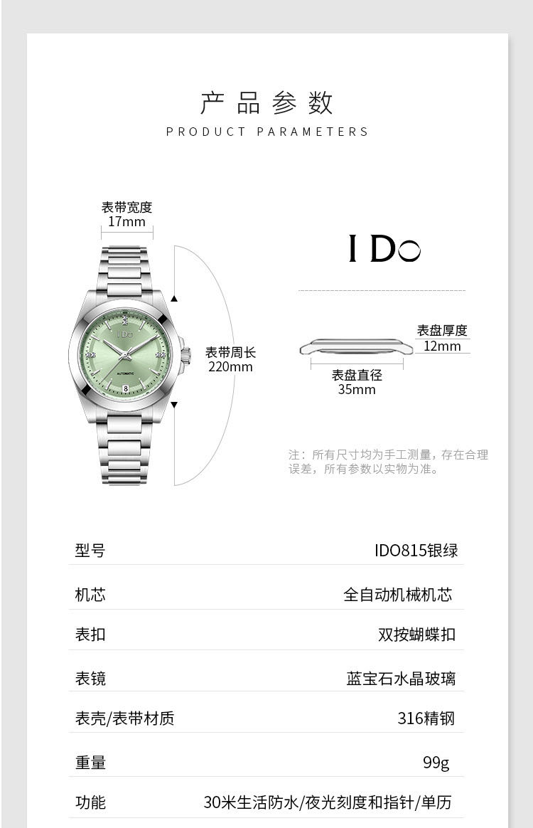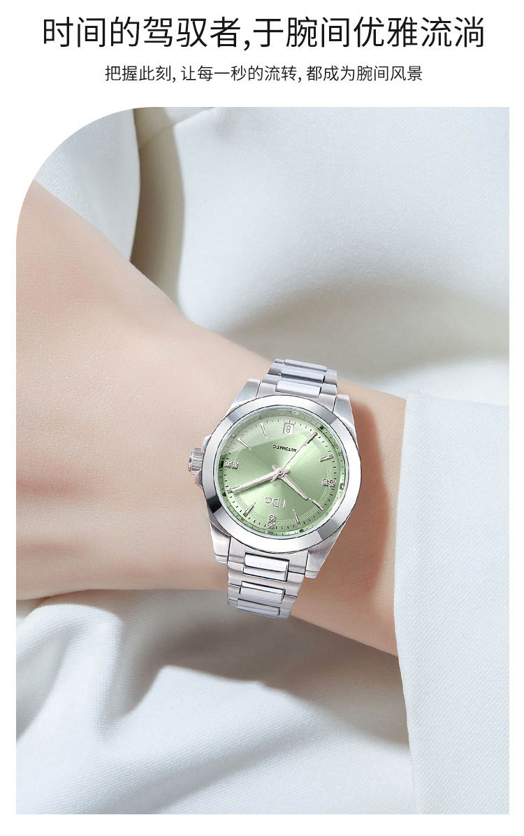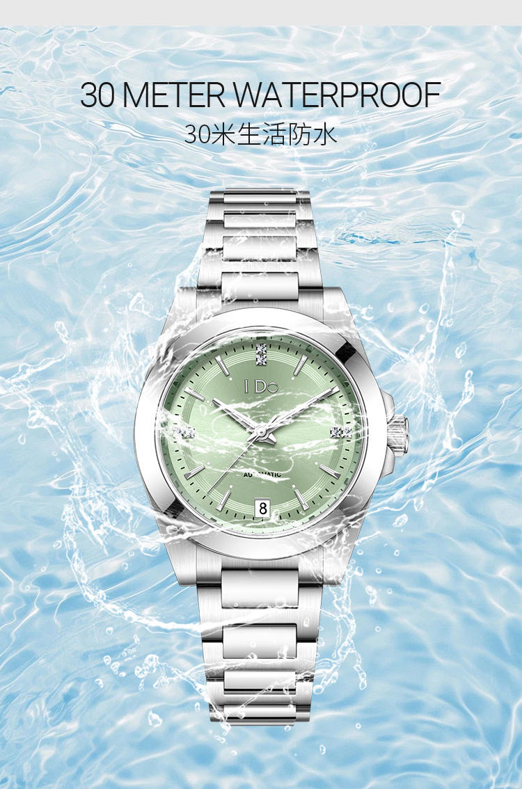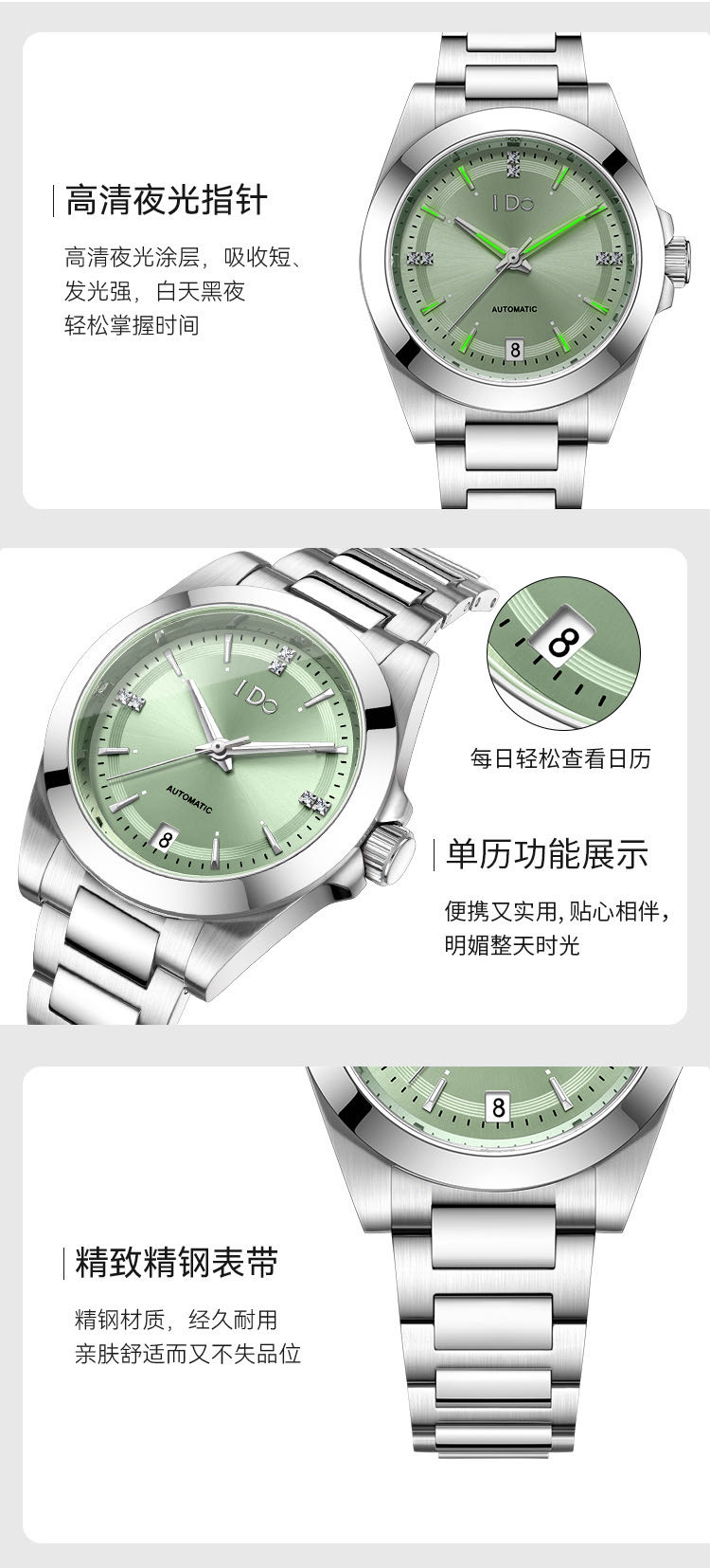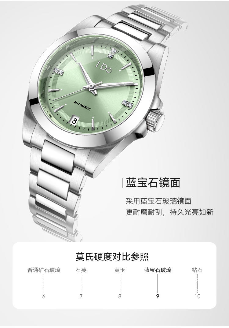 【材质】蓝宝石镜面玻璃 精钢表带 全自动机械机芯 夜光指针 30米生活防水