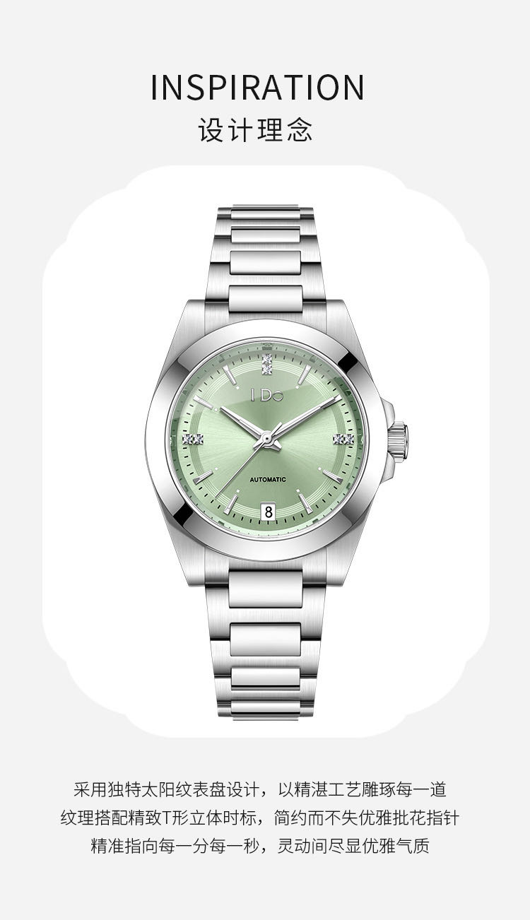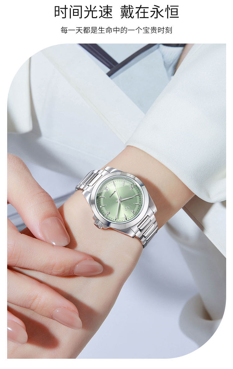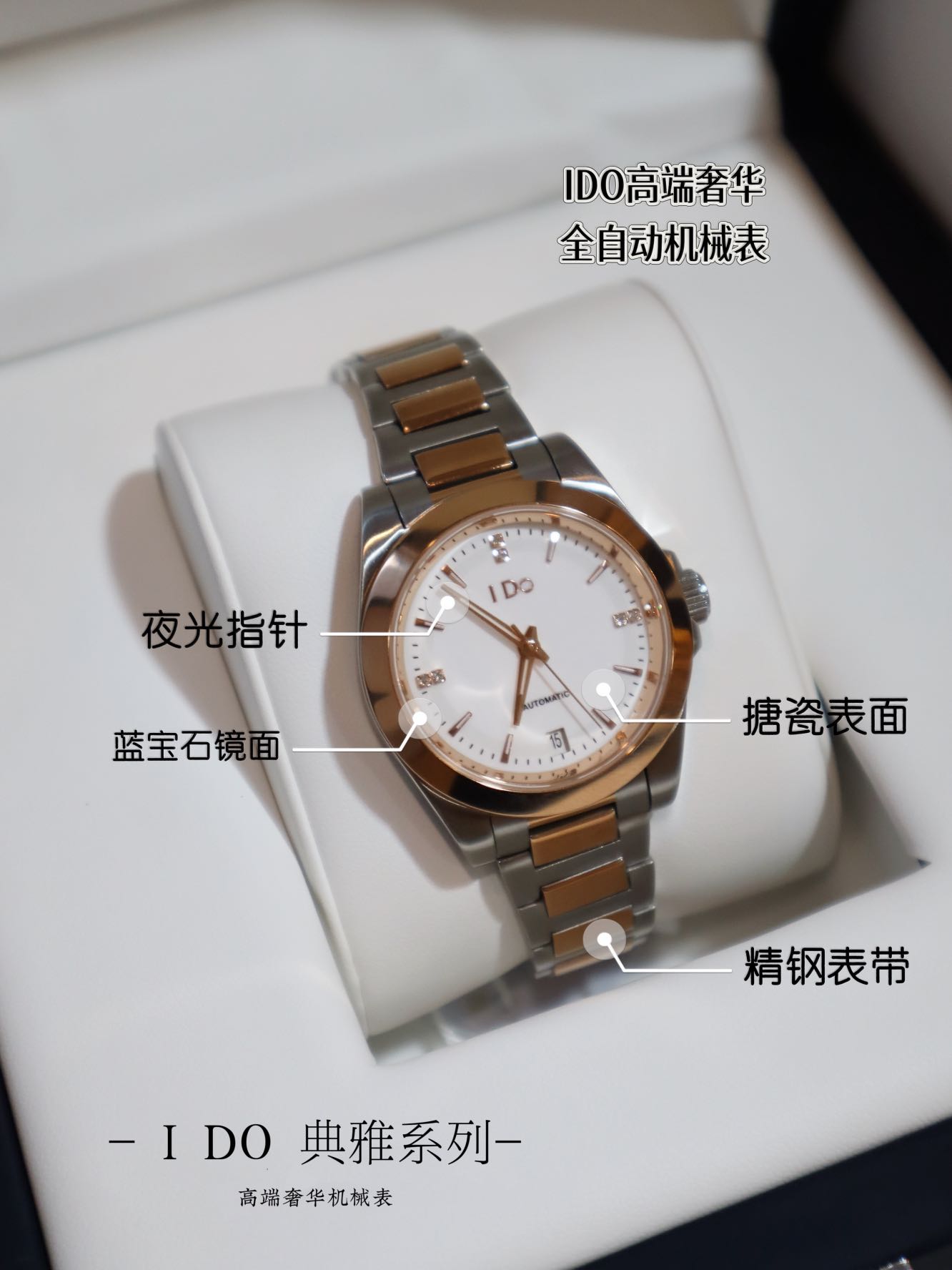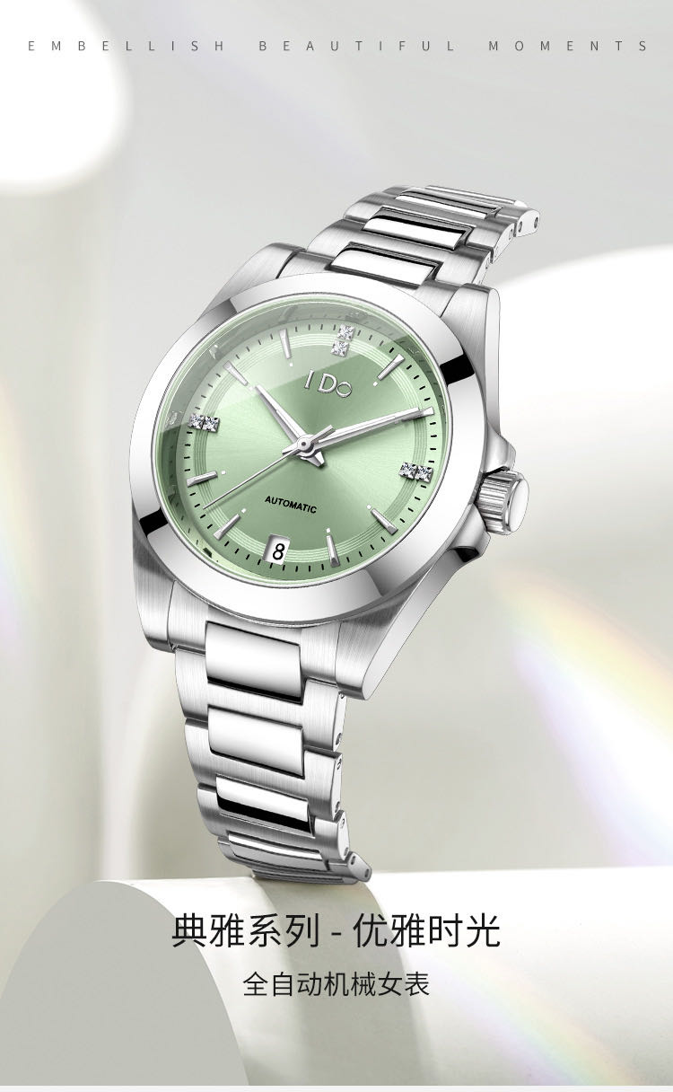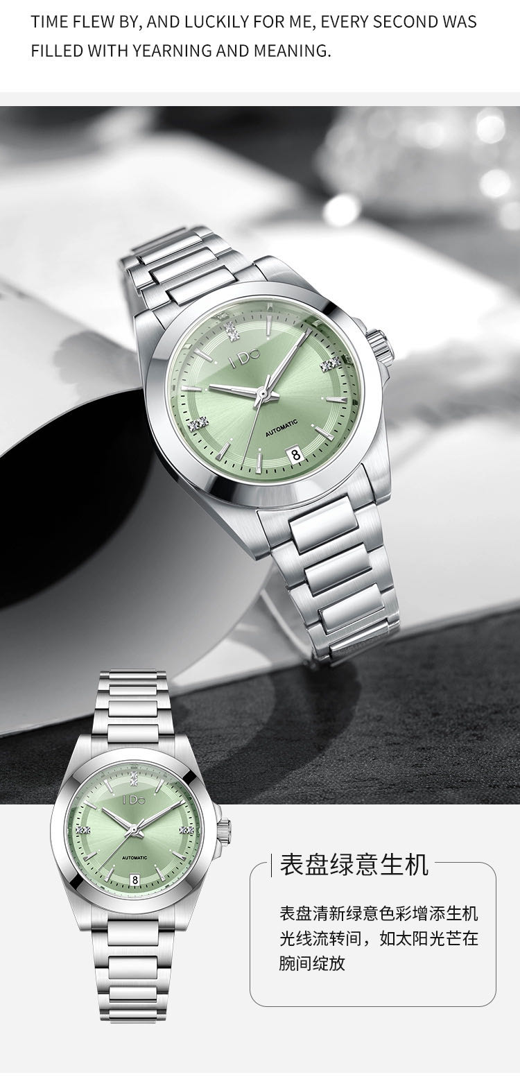 【材质】蓝宝石镜面玻璃 精钢表带 全自动机械机芯 夜光指针 30米生活防水