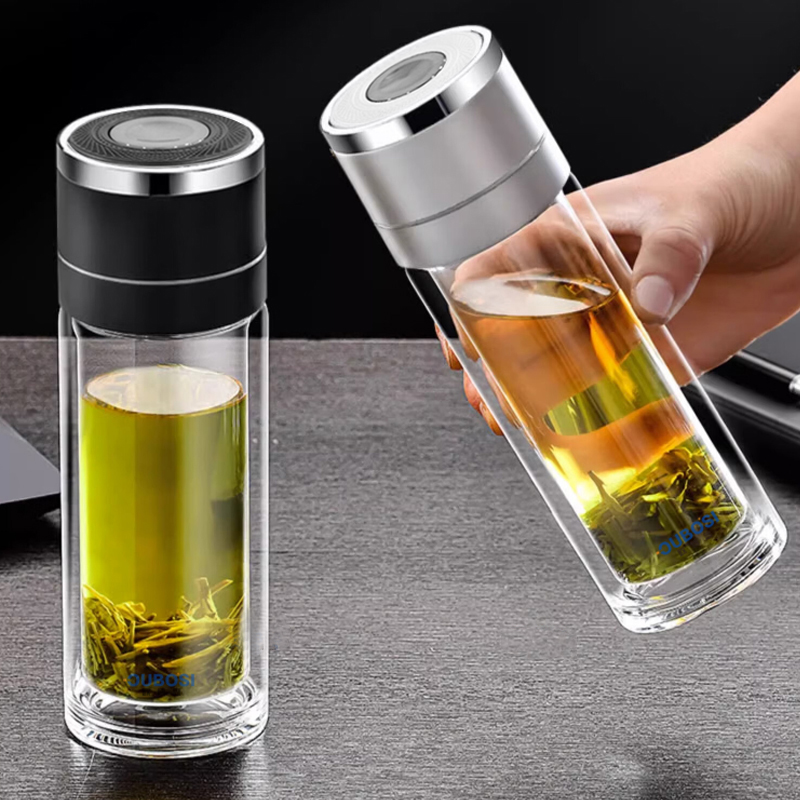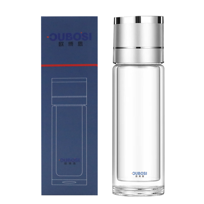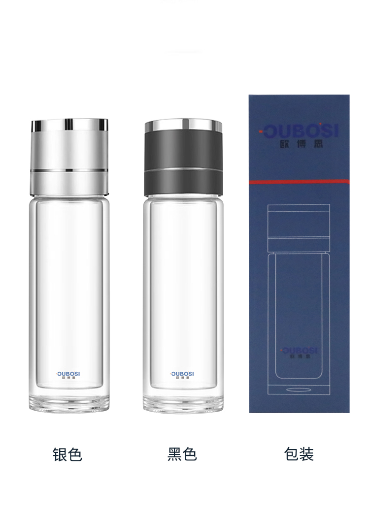 S-欧博思 玻璃水杯车载一键开盖速开水杯茶水分离杯子双层隔热 J913 双色可选【箱规:40】 黑色