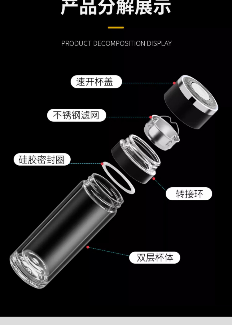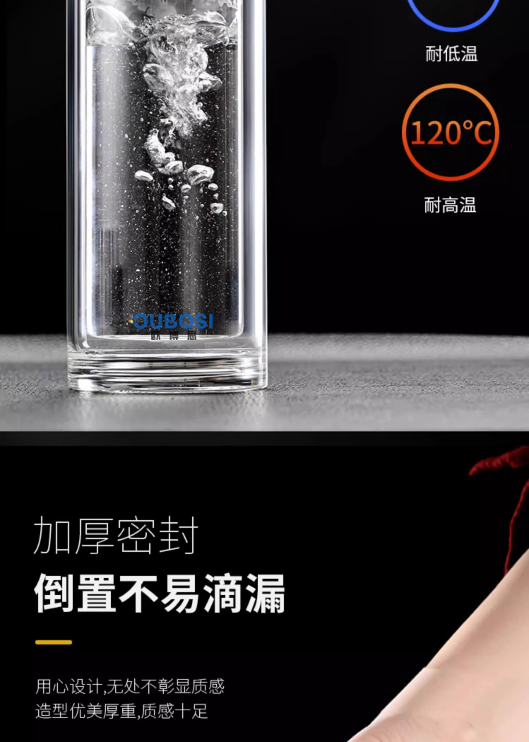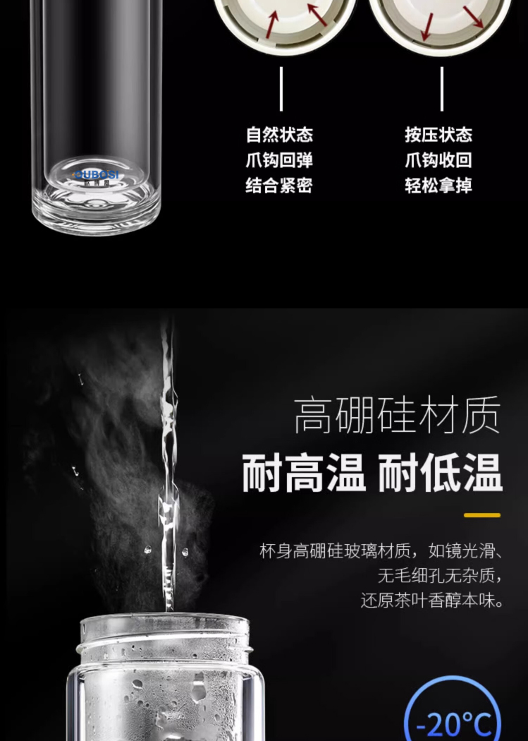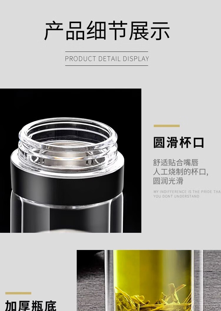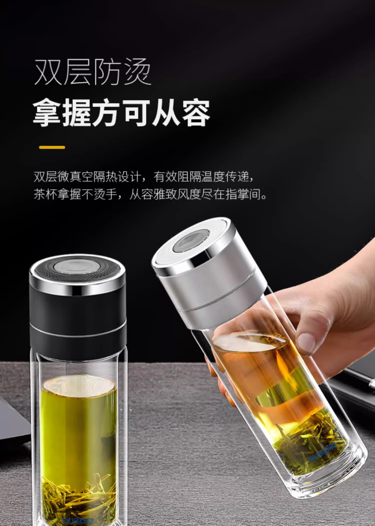 商品名称:S-欧博思 玻璃水杯车载一键开盖速开水杯茶水分离杯子双层隔热 J913 双色可选【箱规:40】 黑色