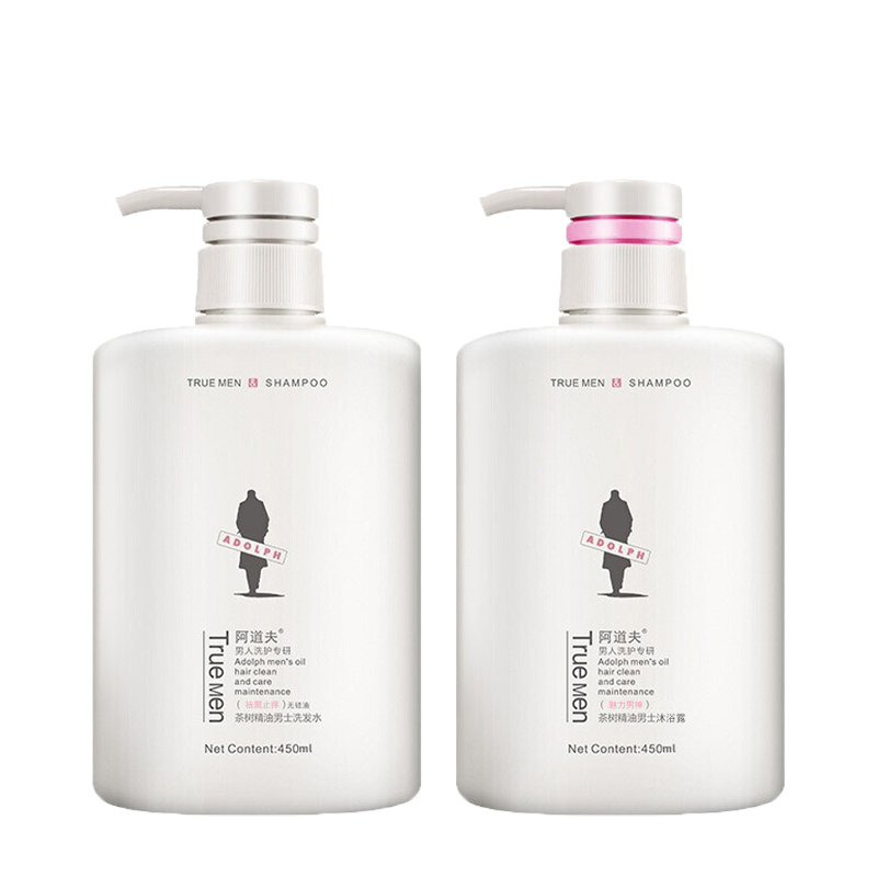 阿道夫茶树精油男士祛屑止痒洗发水450ml+沐浴露450ml