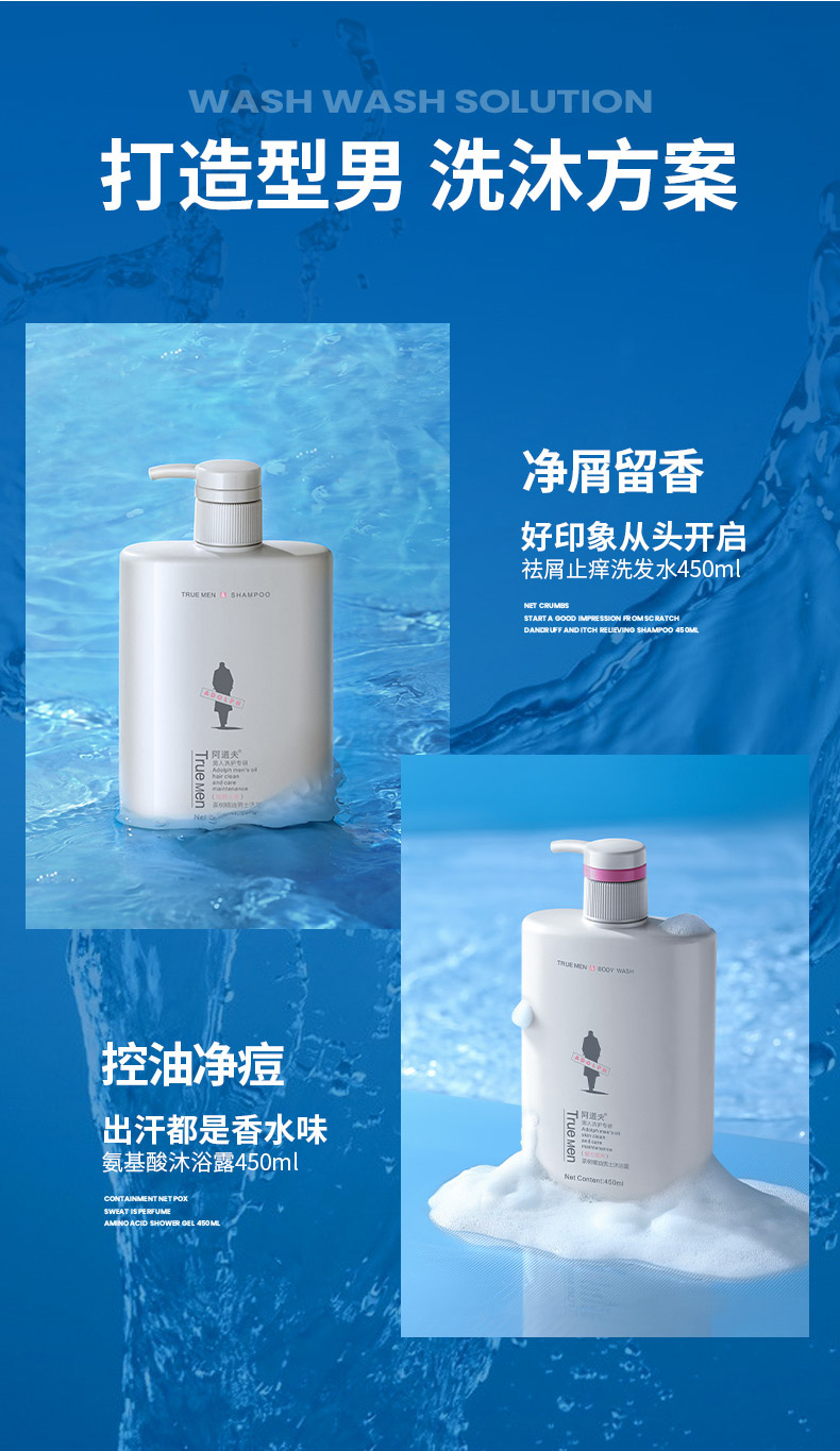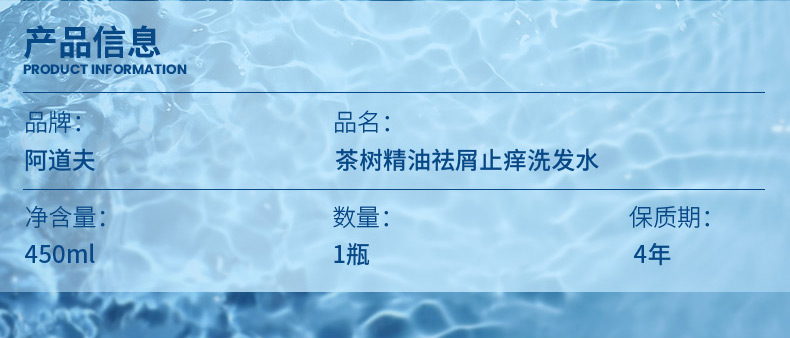 商品名称:阿道夫茶树精油男士祛屑止痒洗发水450ml+沐浴露450ml