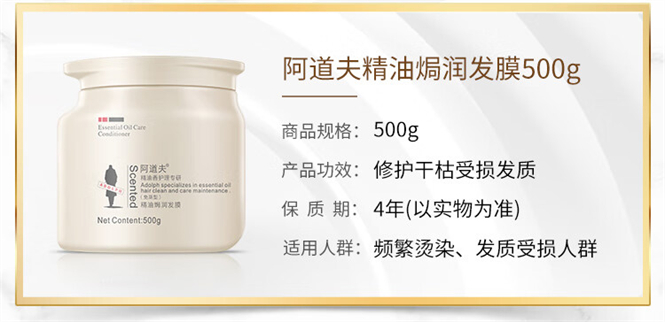 商品名称:阿道夫精油香护理专研精油焗润发膜(免蒸型)500g