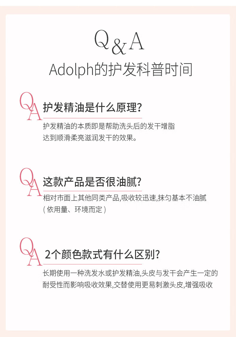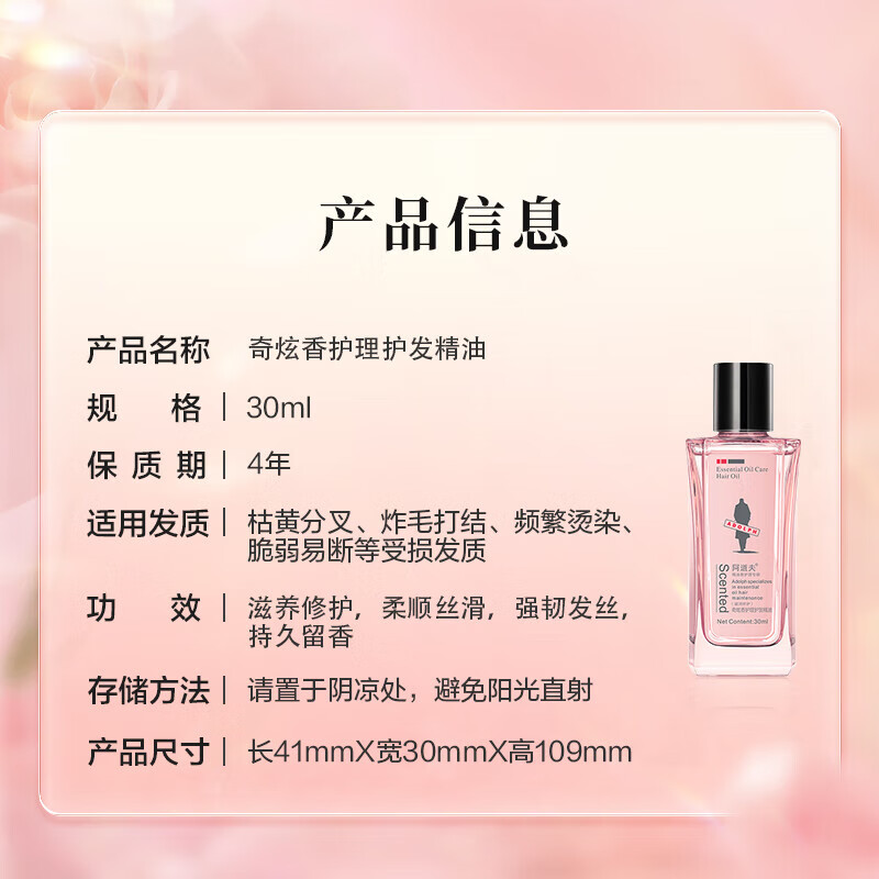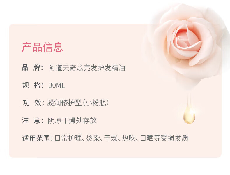 商品名称:阿道夫精油香护理专研奇炫香护理护发精油(凝润修护)30ml