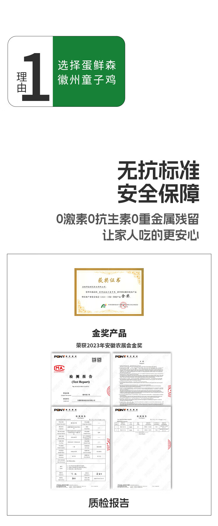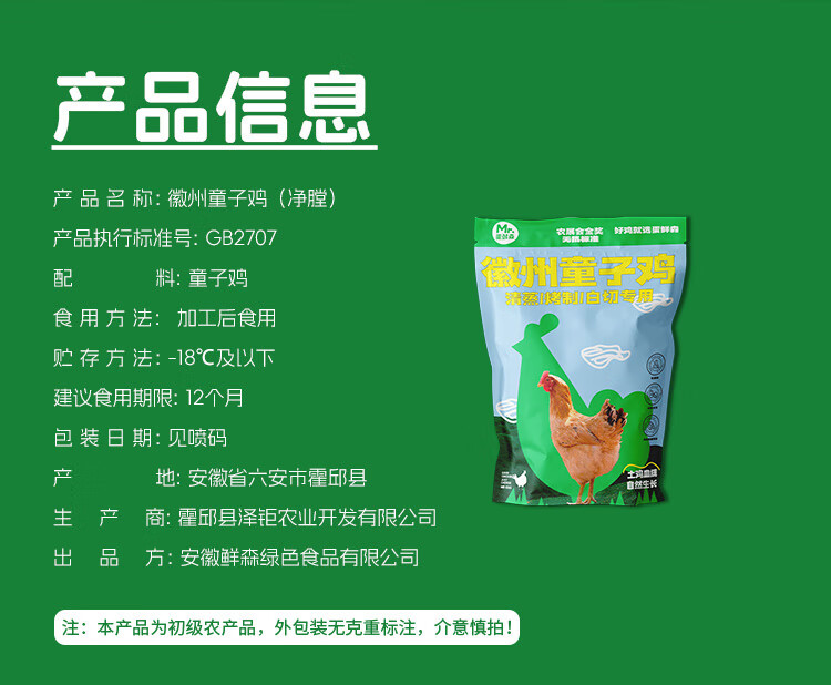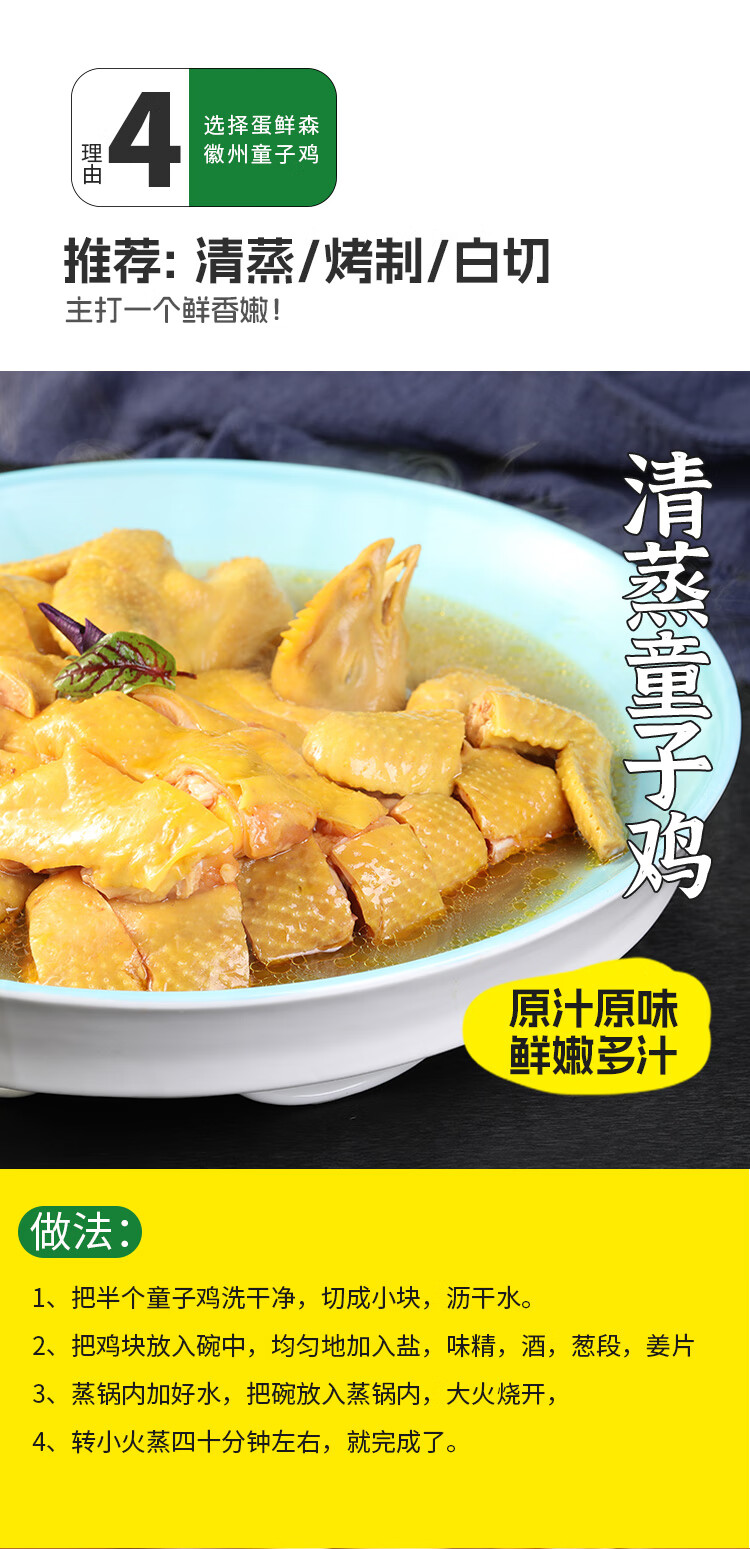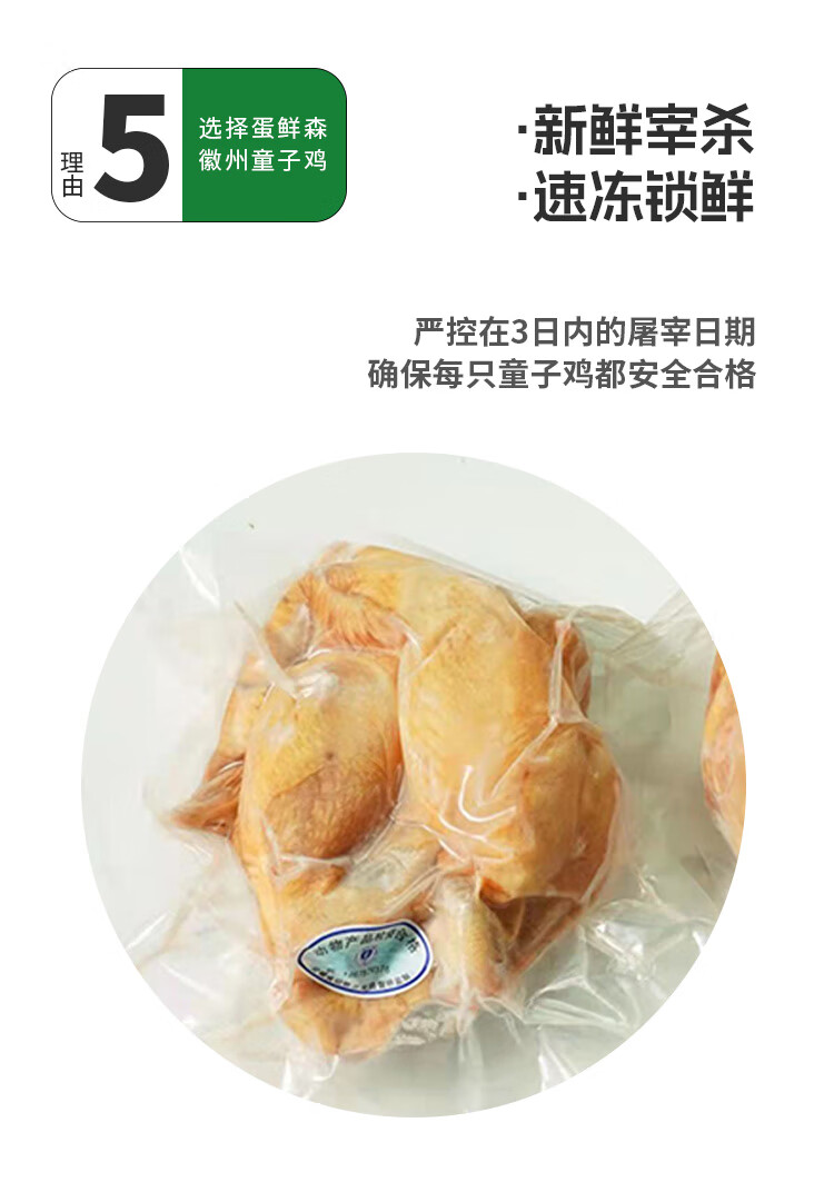 商品名称:蛋鲜森徽州童子鸡 1000g±50g/只2只装ZH138