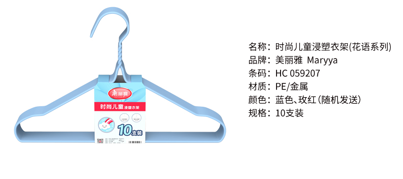 商品名称:美丽雅时尚儿童浸塑衣架HC059207规格:10支装