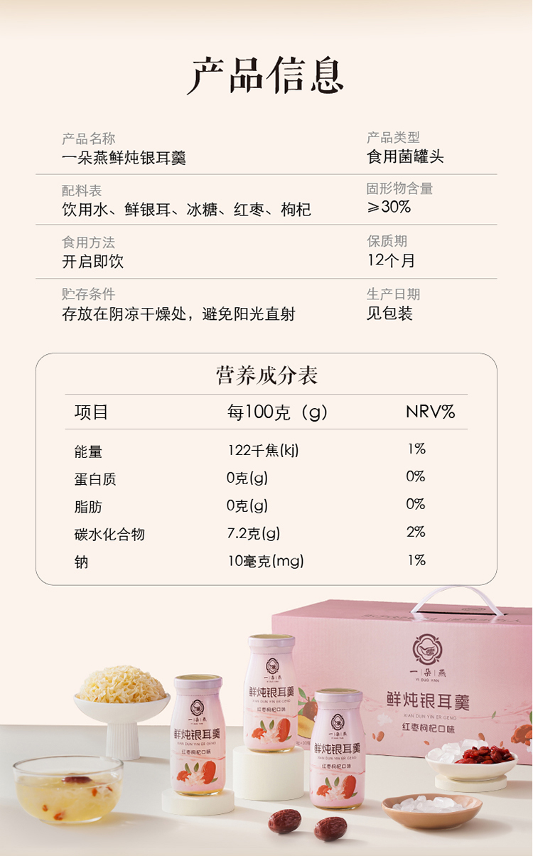 一朵燕 鲜炖银耳羹礼盒 1980克(红枣枸杞口味) 6975333180412偏远另加运费