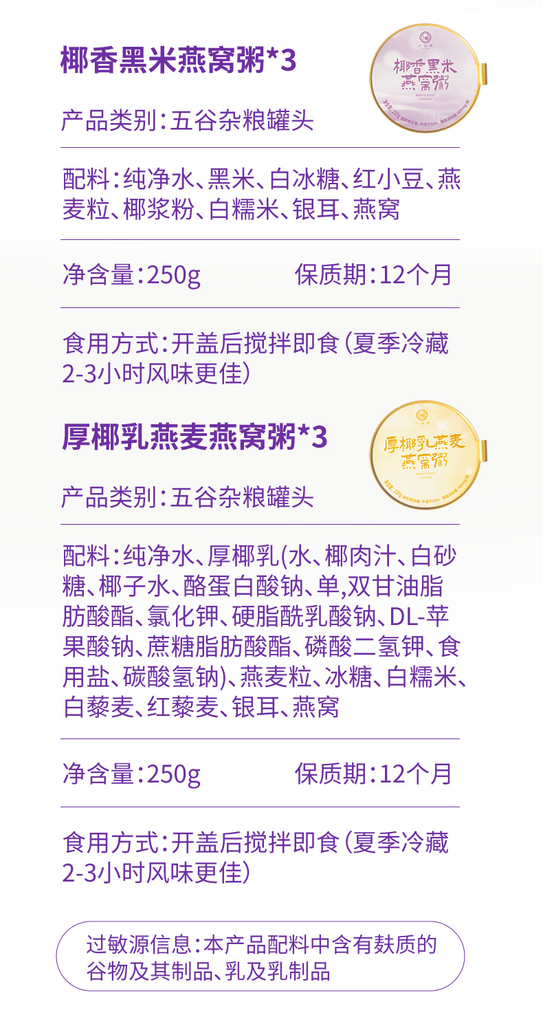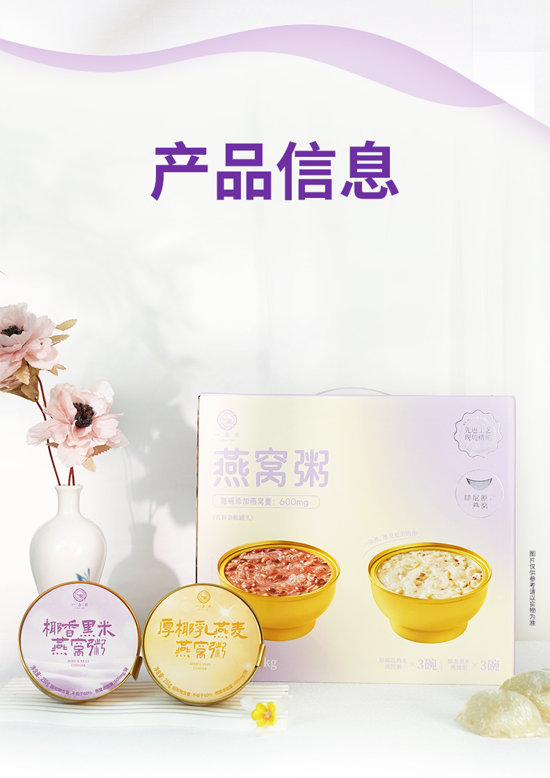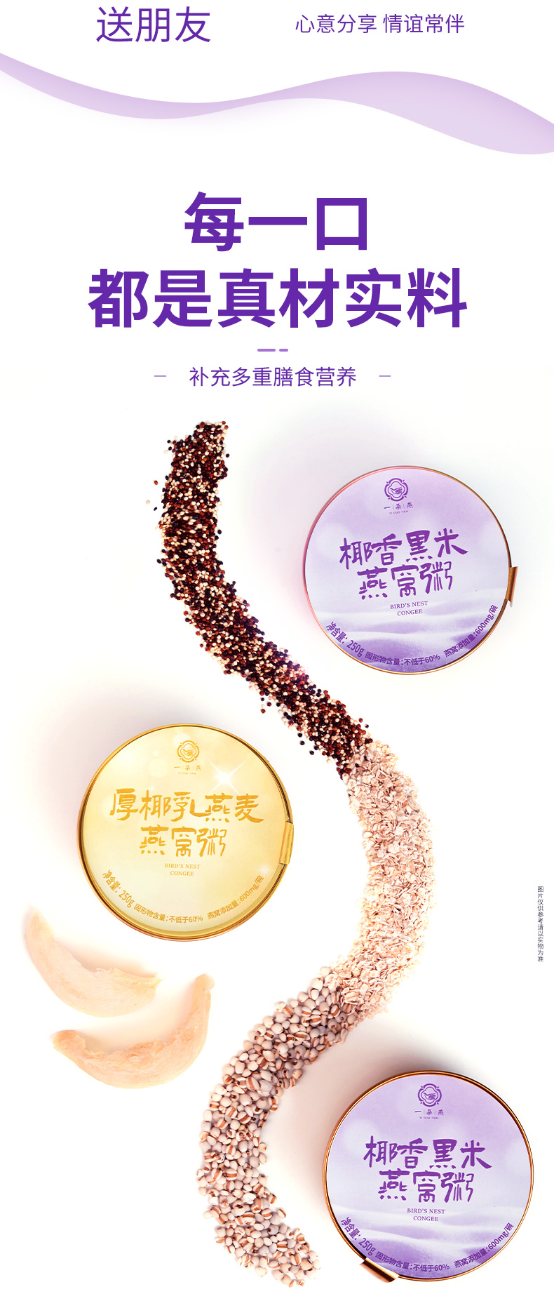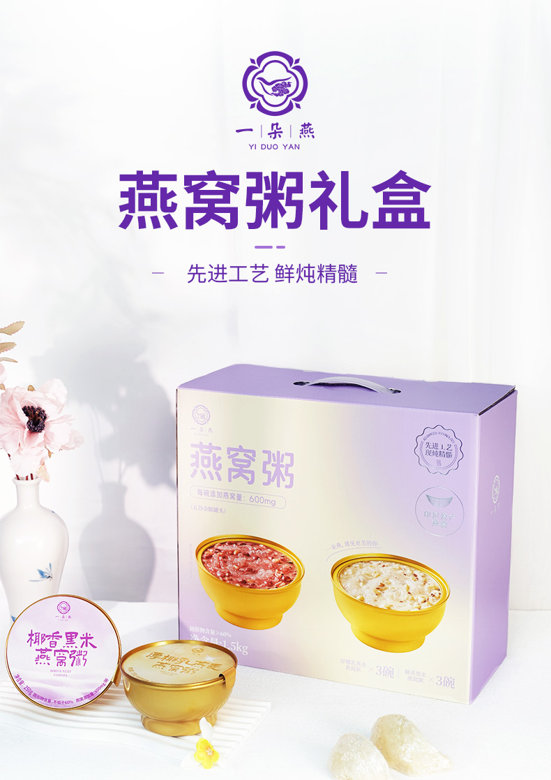 商品名称:一朵燕 燕窝粥礼盒(紫色款) 1500克 6975333180偏远另加运费