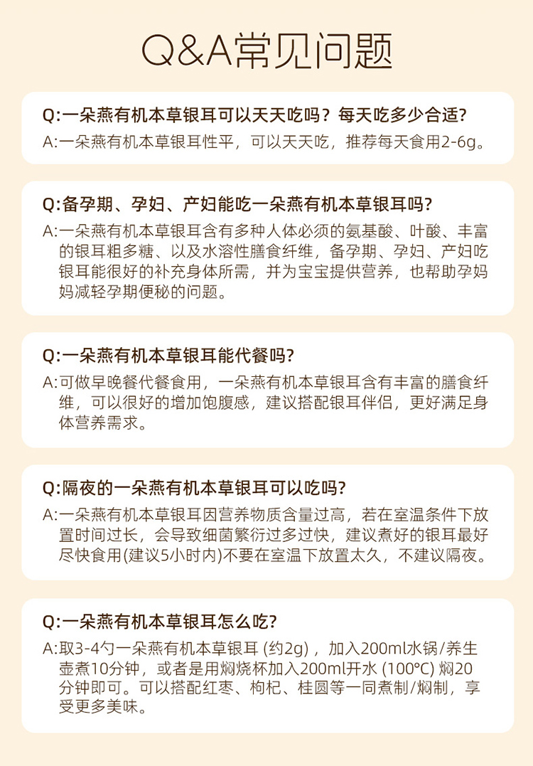 商品名称:一朵燕 有机本草银耳80克(爆款) 6975333180818偏远另加运费