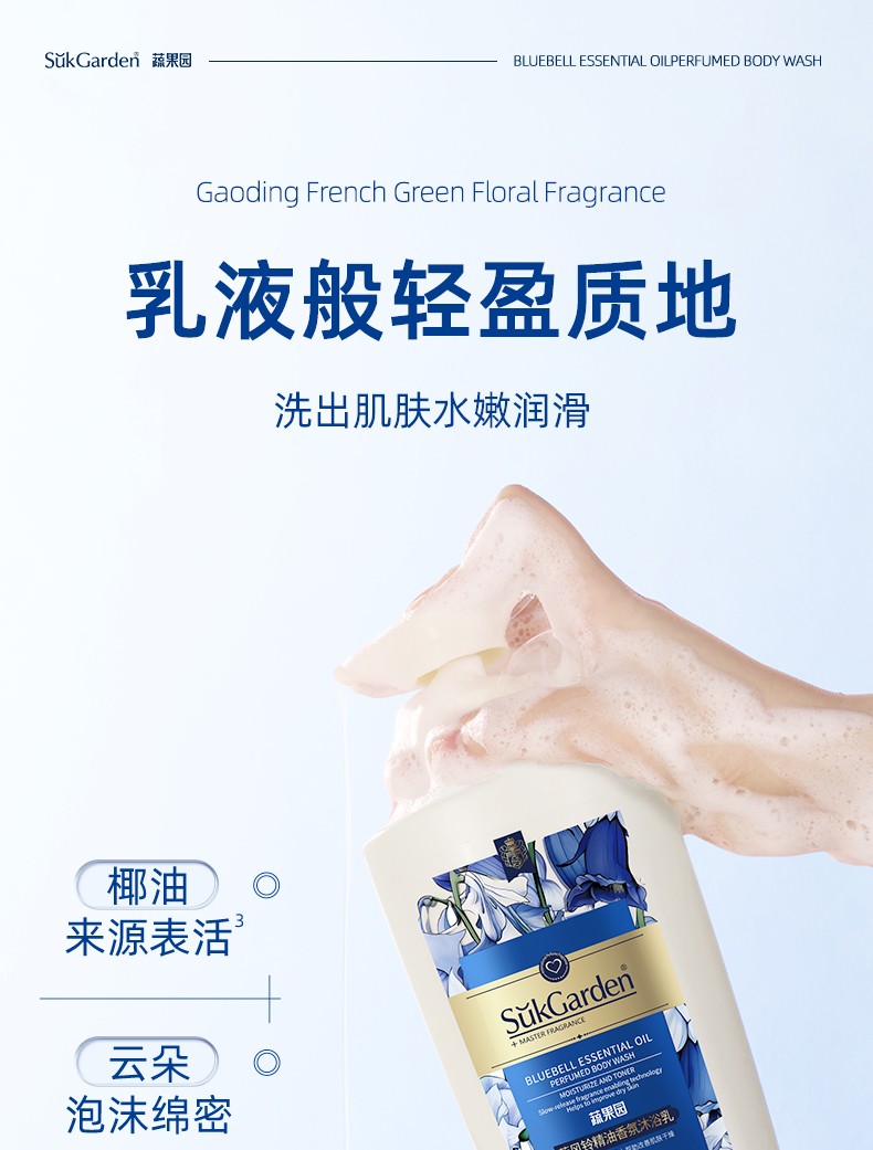 商品名称:SukGarden蔬果园蓝风铃精油香氛沐浴乳800gSGY0628