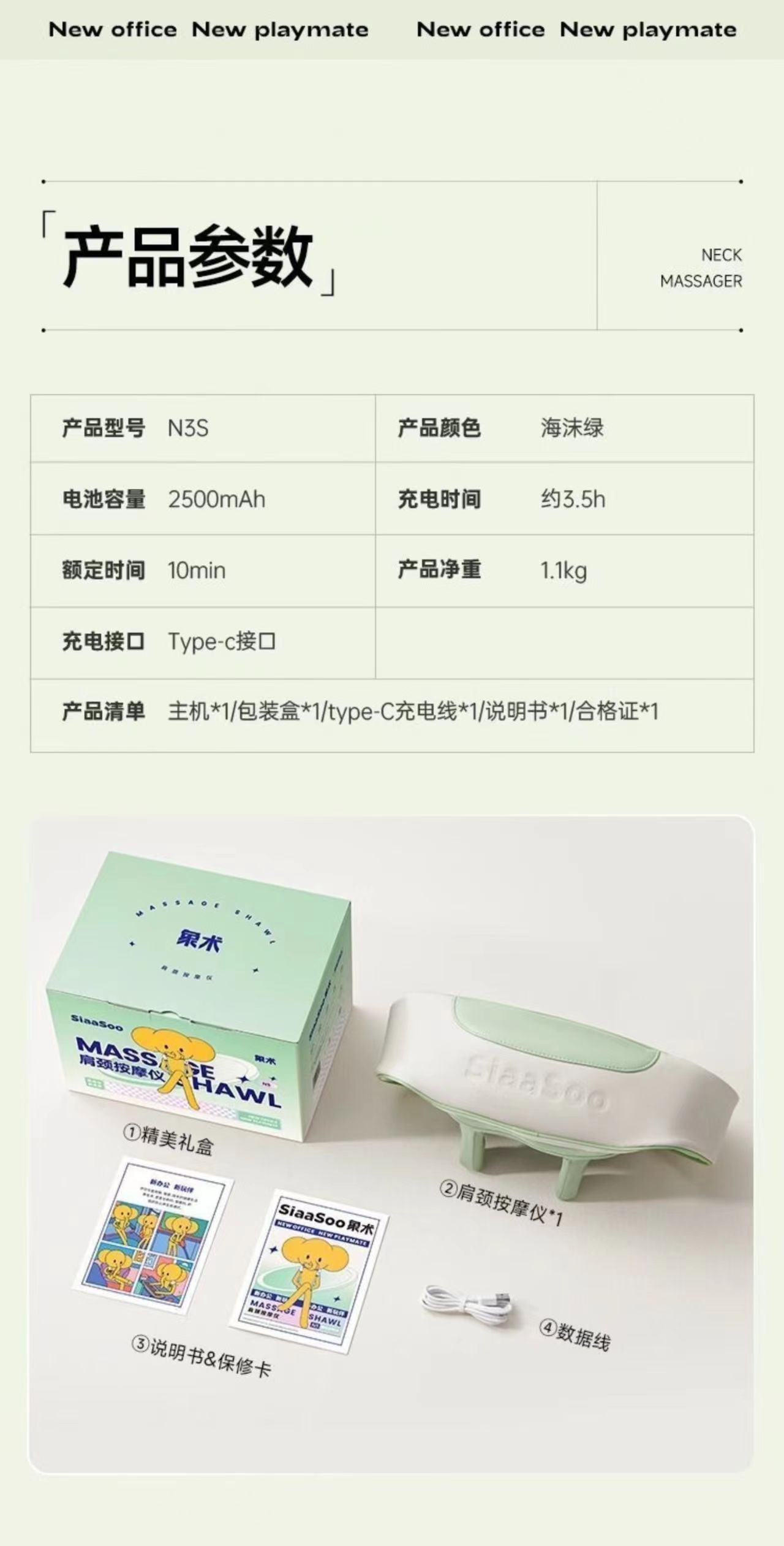 商品名称:象术(SIAASOO) 颈椎按摩仪 N3S 海沫绿【仿人手按摩】【柔软皮革】