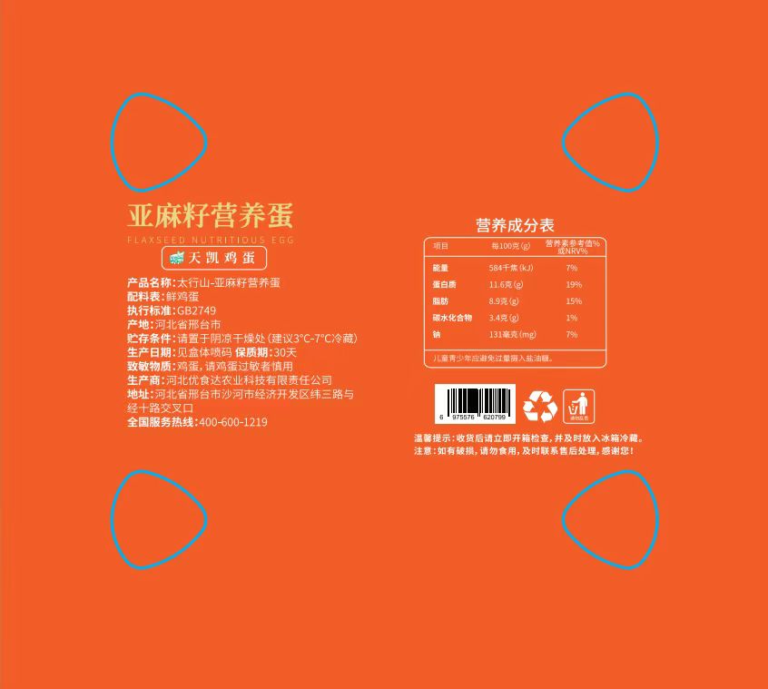 商品名称:天凯太行山顶牧场养殖亚麻籽营养鸡蛋 1.5kg/30枚 6975576620799