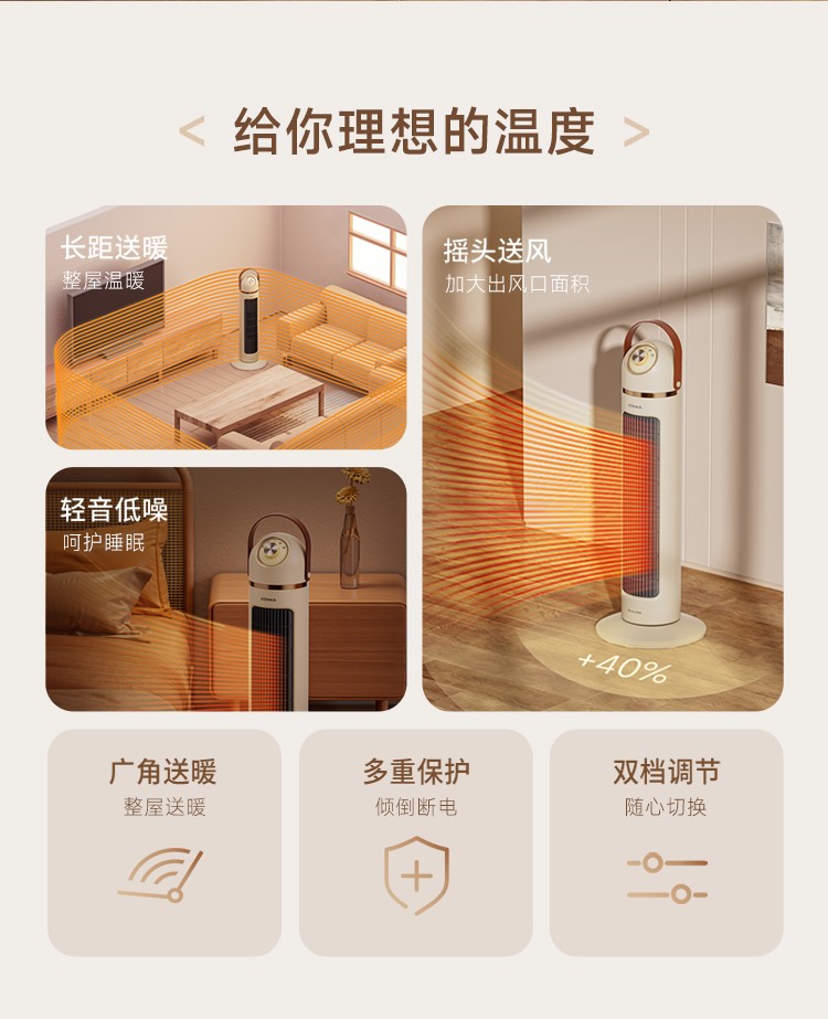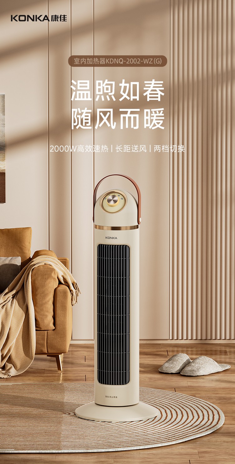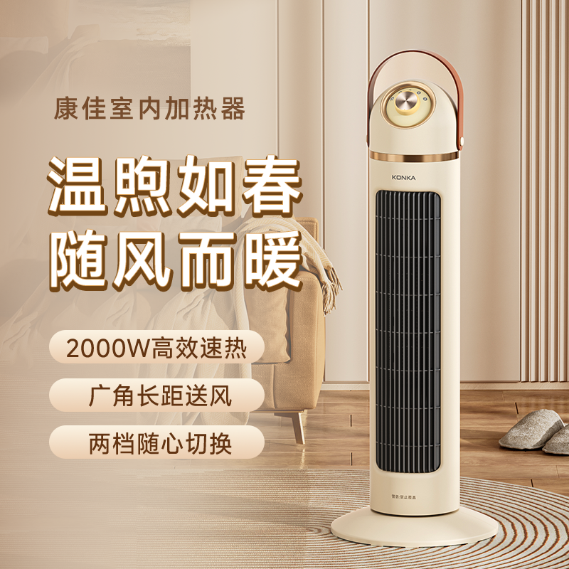 康佳家用电暖器取暖器立式暖风扇二档摇头款机械款 KDNQ-2002-WZ(G)