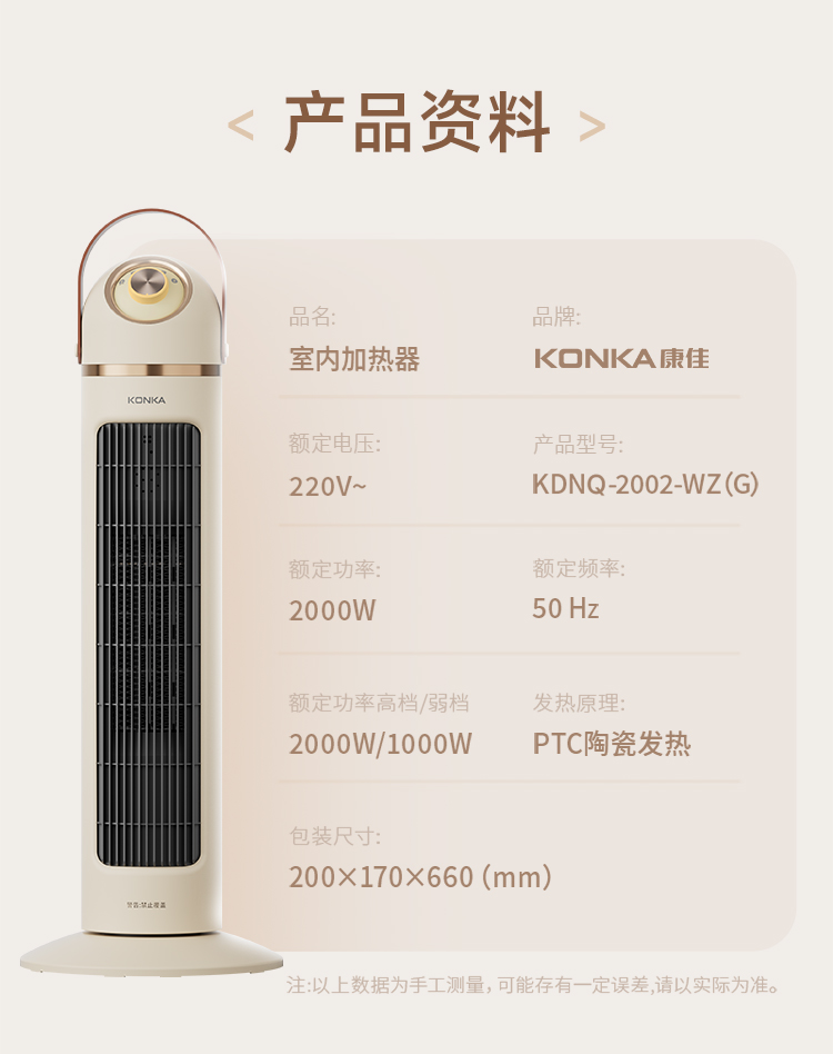 商品名称:康佳家用电暖器取暖器立式暖风扇二档摇头款机械款 KDNQ-2002-WZ(G)