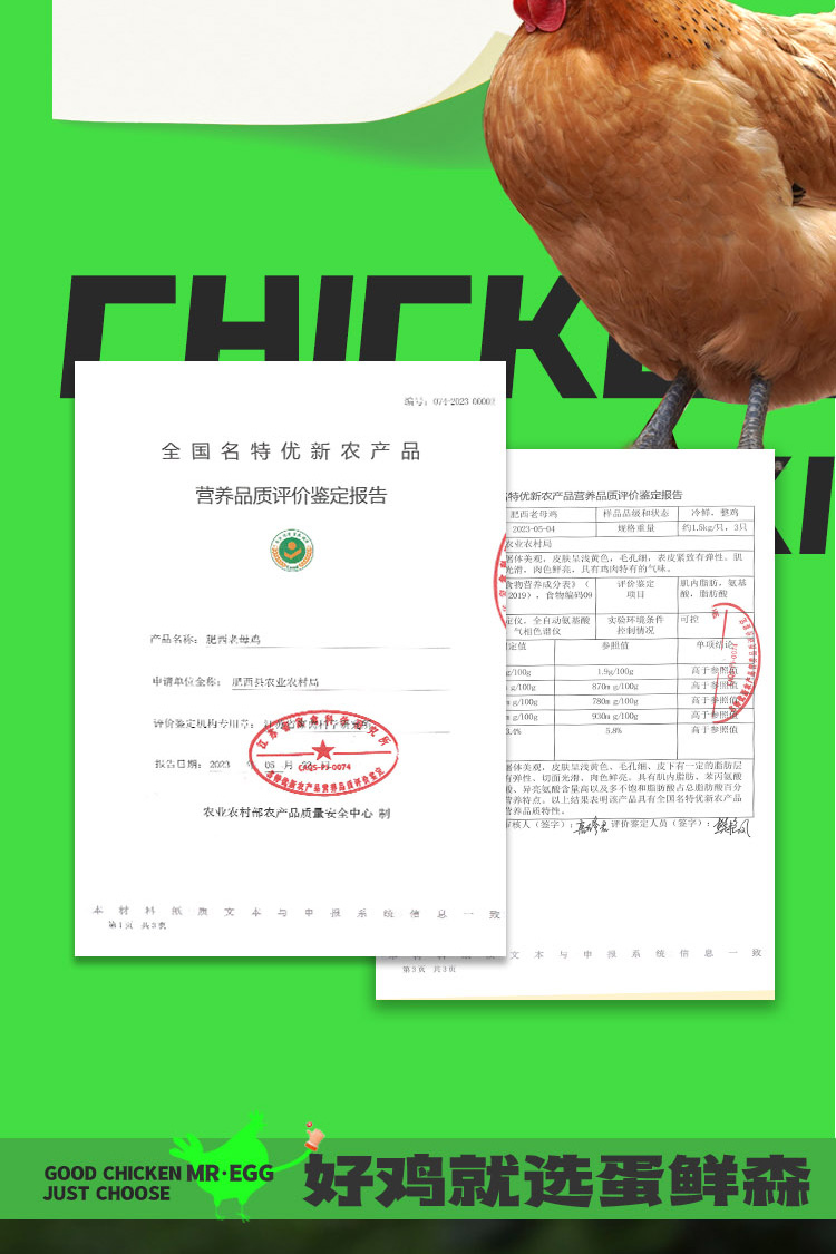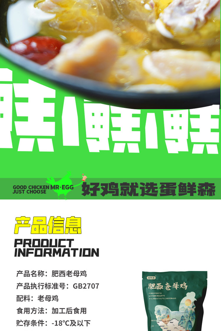 商品名称:蛋鲜森金奖肥西老母鸡≥1000g/只ZH045