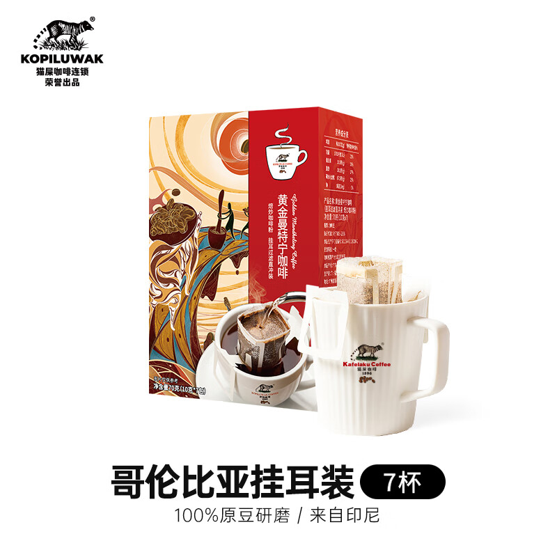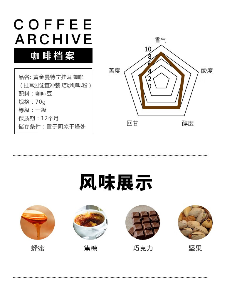 商品名称:【野鼬咖啡】黄金曼特宁挂耳咖啡70g