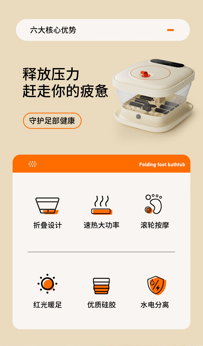 商品名称:康佳/KONKA 全新升级款感恩礼智能四季解乏养生折叠足浴盆 家用泡脚桶恒温加热洗脚盆 缓解疲劳 女神节日礼物 权威检验放心品质 感恩礼 秋冬养生