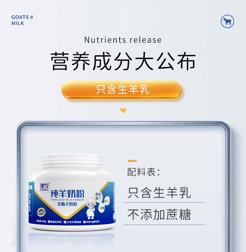 臻牧(zhenmu)全脂纯羊奶粉成人学生女士儿童中老年羊奶粉 400g 6946708188364 偏远另加运费