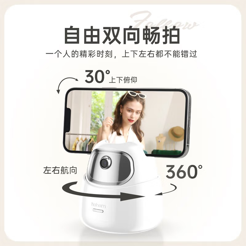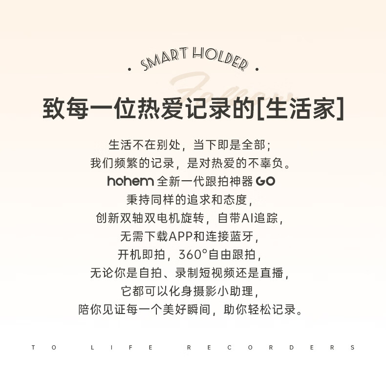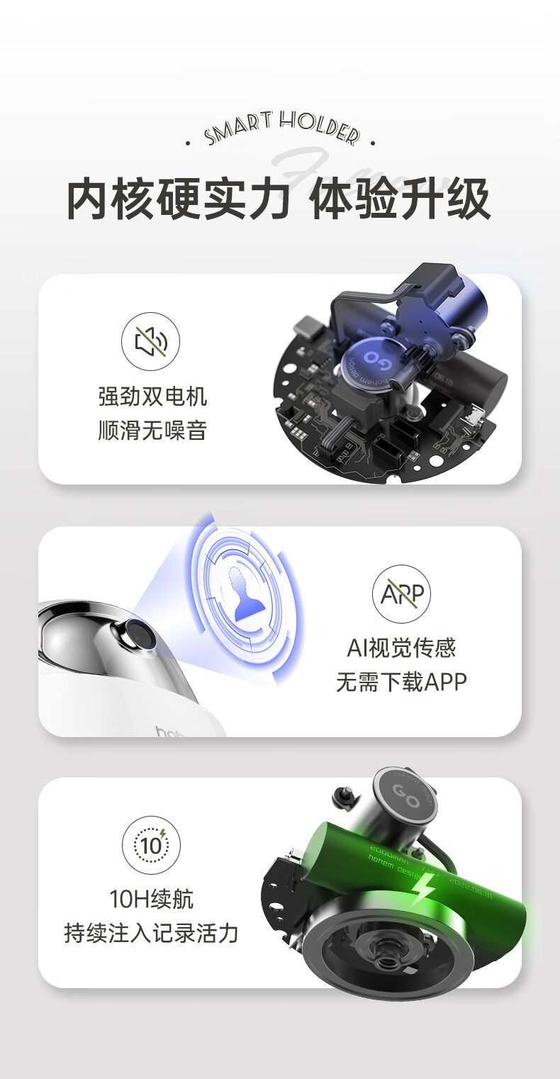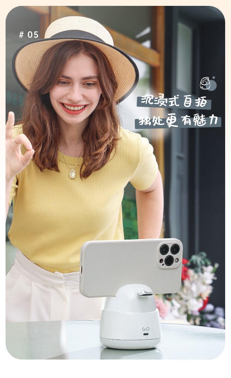 商品名称:浩瀚卓越(hohem)GO手机云台稳定器桌面防抖拍摄360度双向跟拍 AI人脸追踪无需APP 桌面云台GO(标配) 偏远另加运费