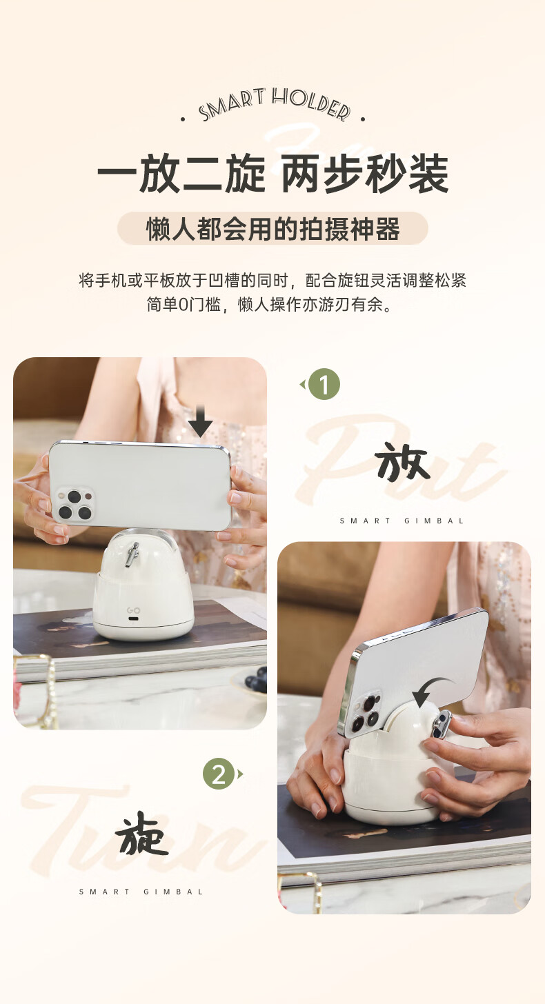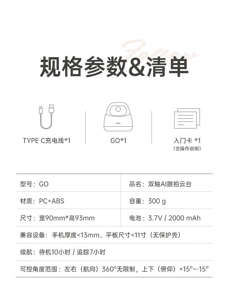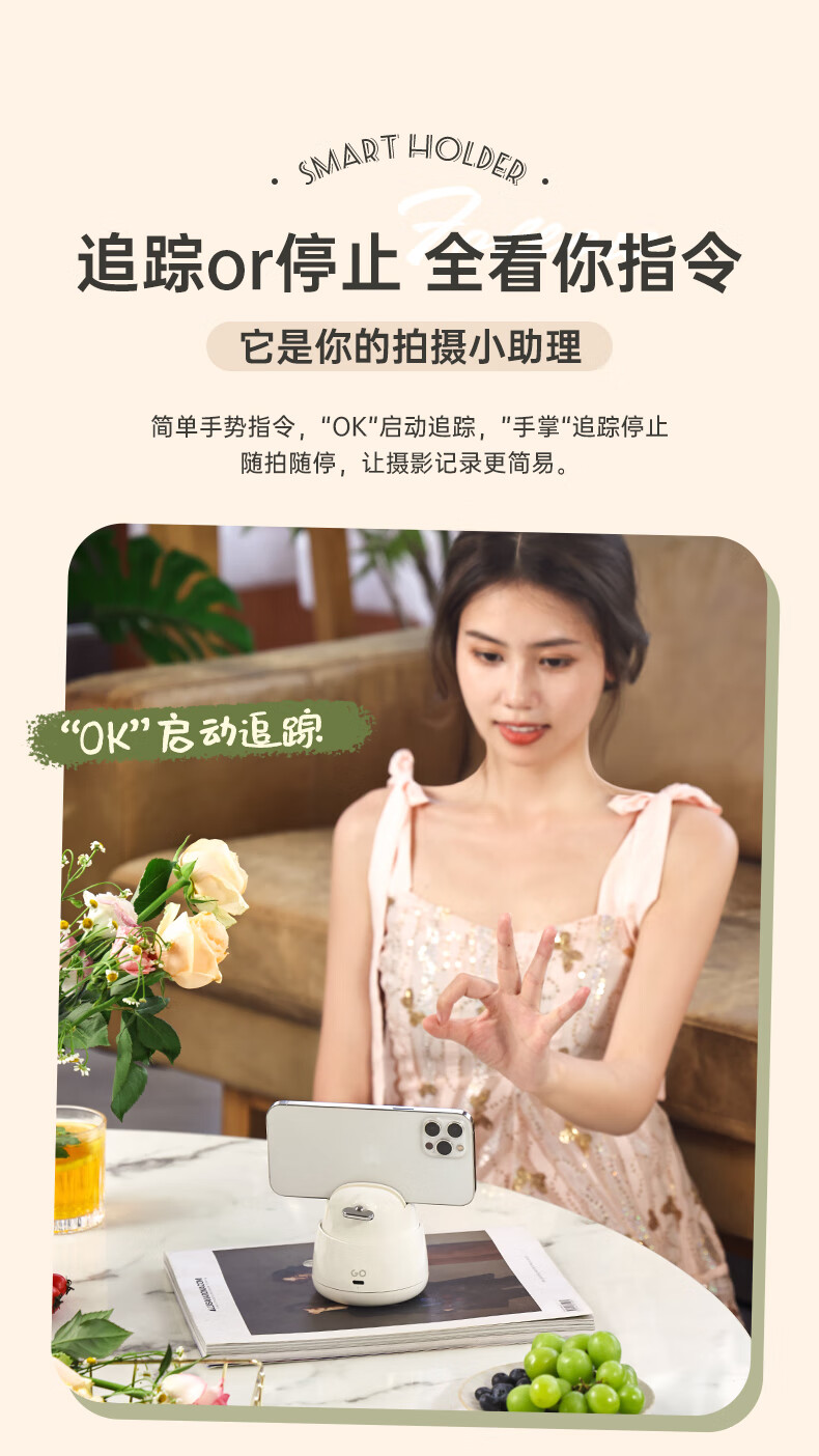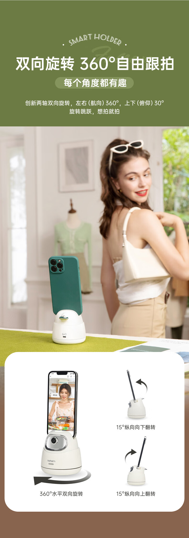 商品名称:浩瀚卓越(hohem)GO手机云台稳定器桌面防抖拍摄360度双向跟拍 AI人脸追踪无需APP 桌面云台GO(标配) 偏远另加运费