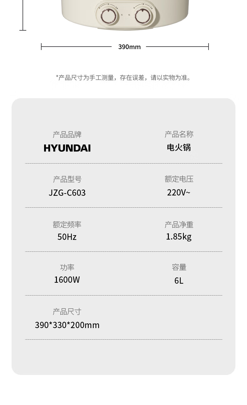 商品名称:HYUNDAI 韩国现代电火锅 JZG-C603