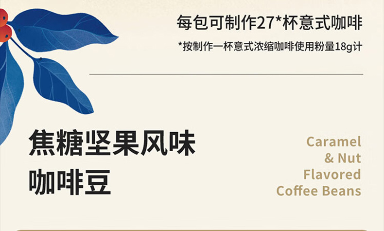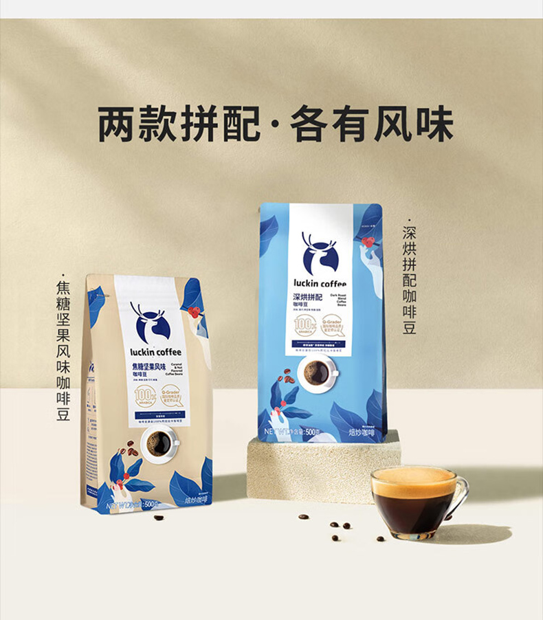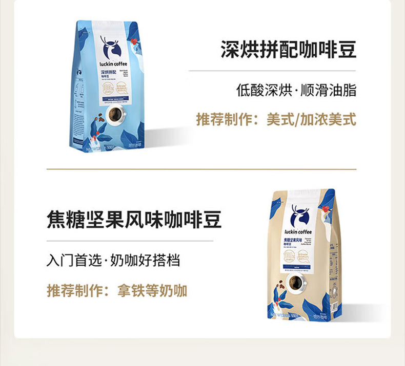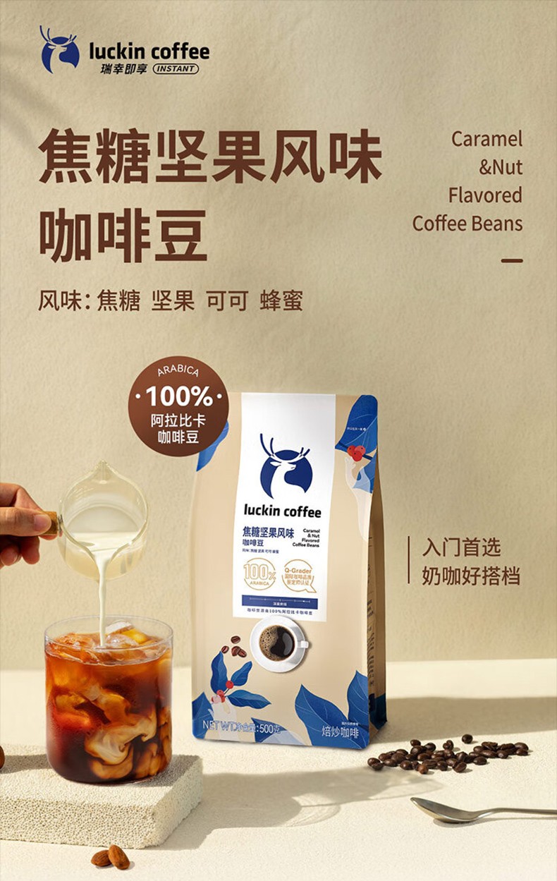 瑞幸咖啡即享拼配焦糖坚果风味咖啡豆500g*20袋 整箱 深烘手磨粉醇香