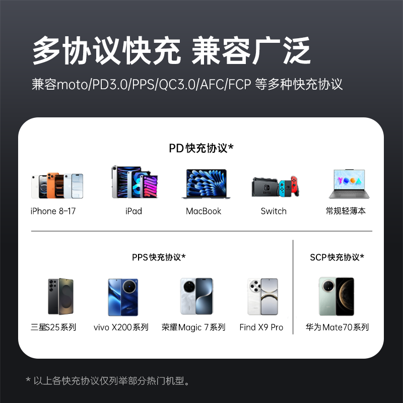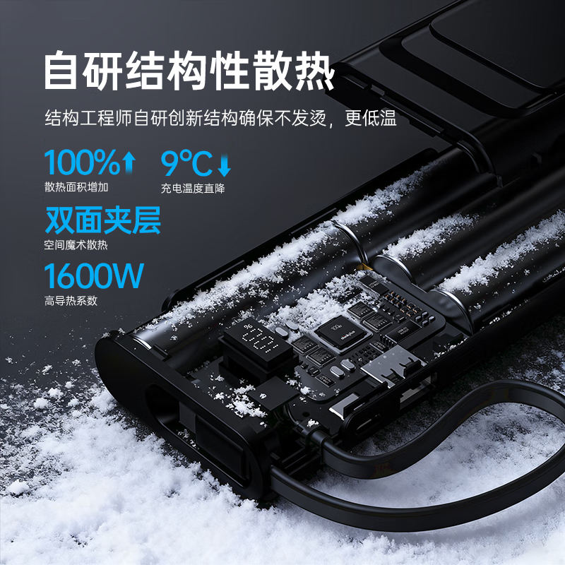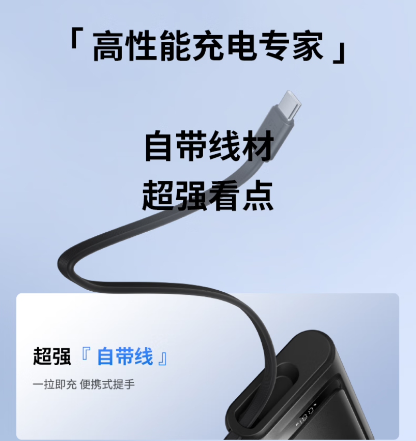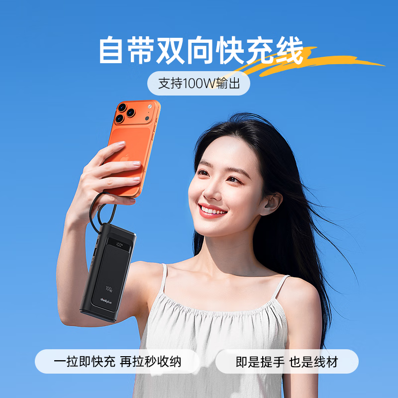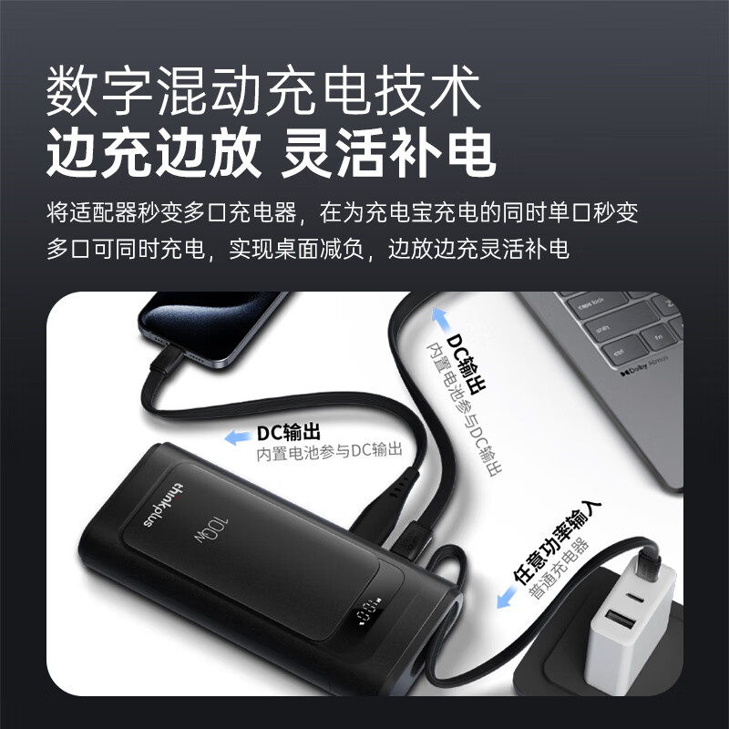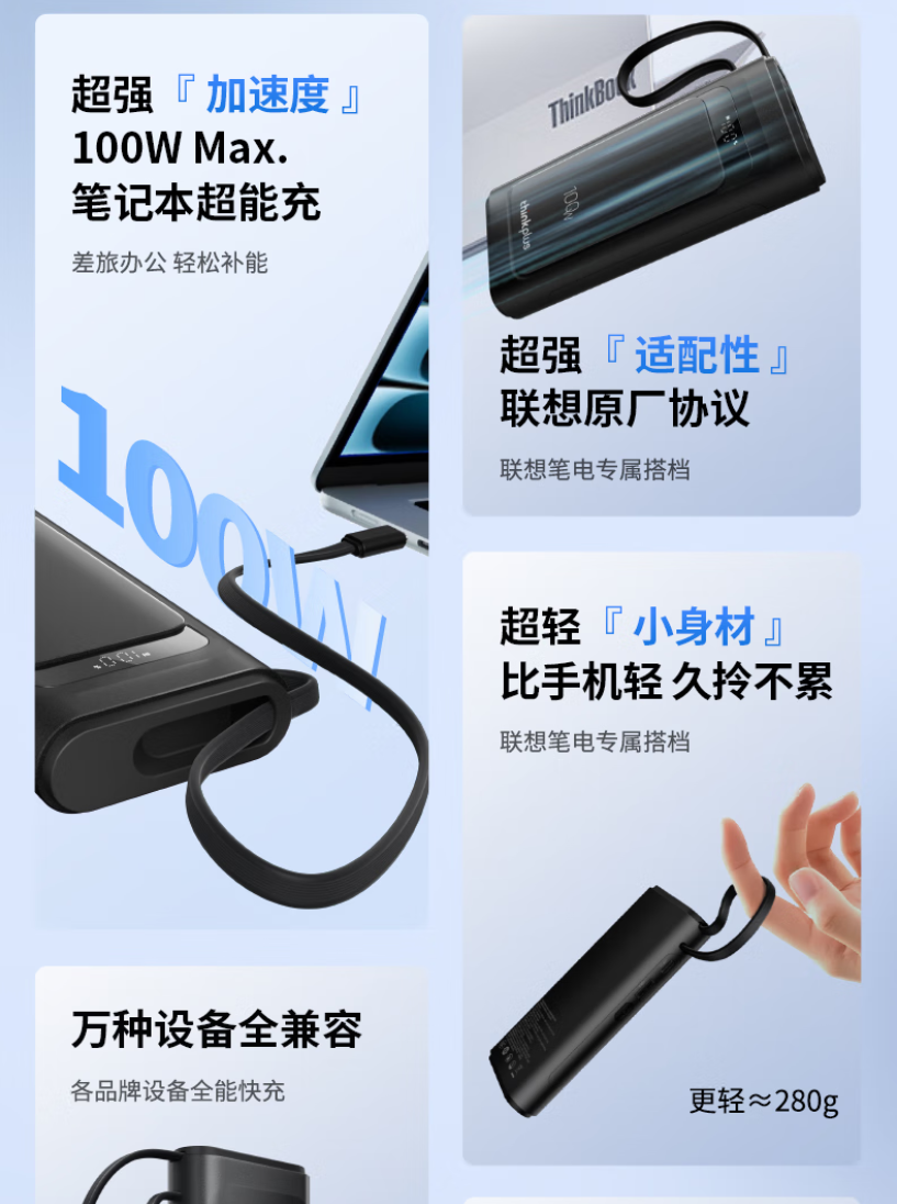 商品名称:ThinkPlus联想【3C认证可上飞机】100W自带线充电宝10000毫安大容量快充移动电源适用苹果17华为小米笔记本 黑/白色