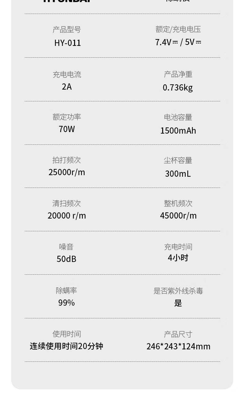 商品名称:HYUNDAI 韩国现代除螨仪 HY-011