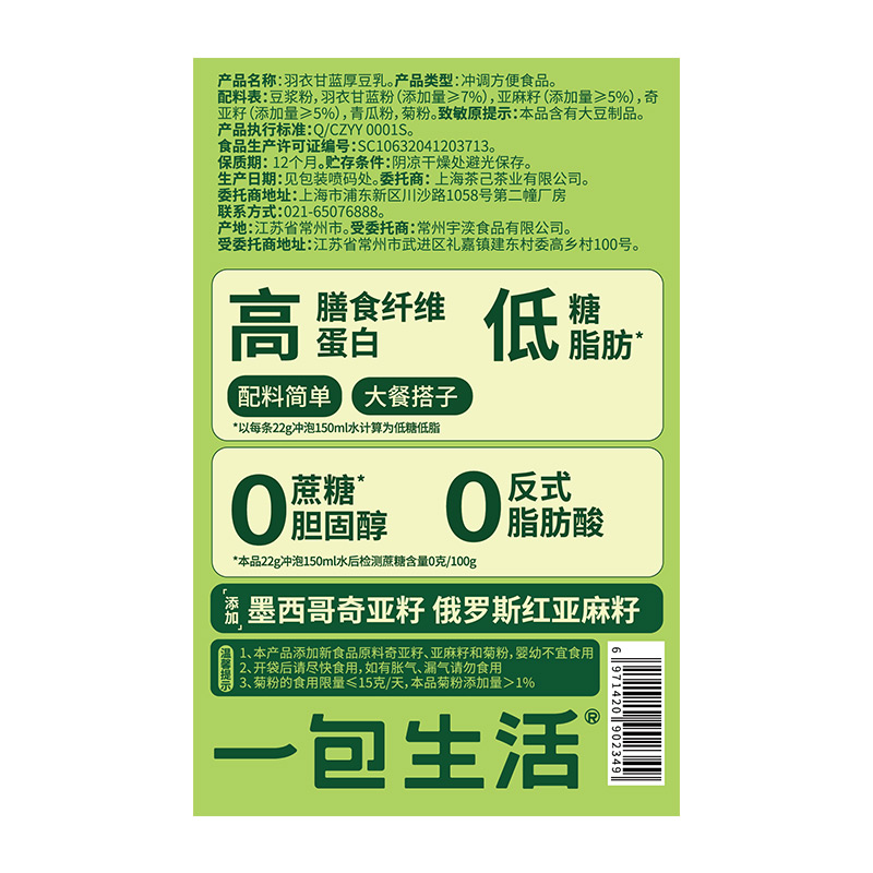 商品名称:一包生活 羽衣甘蓝厚豆乳 6包/盒*4盒 6971420902349