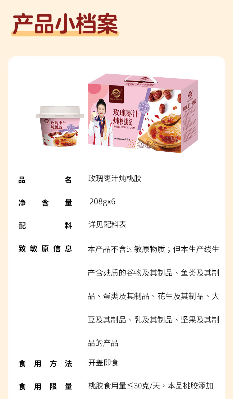 商品名称:天生好果 玫瑰枣汁炖桃胶1248克 6957292907781 偏远另加运费