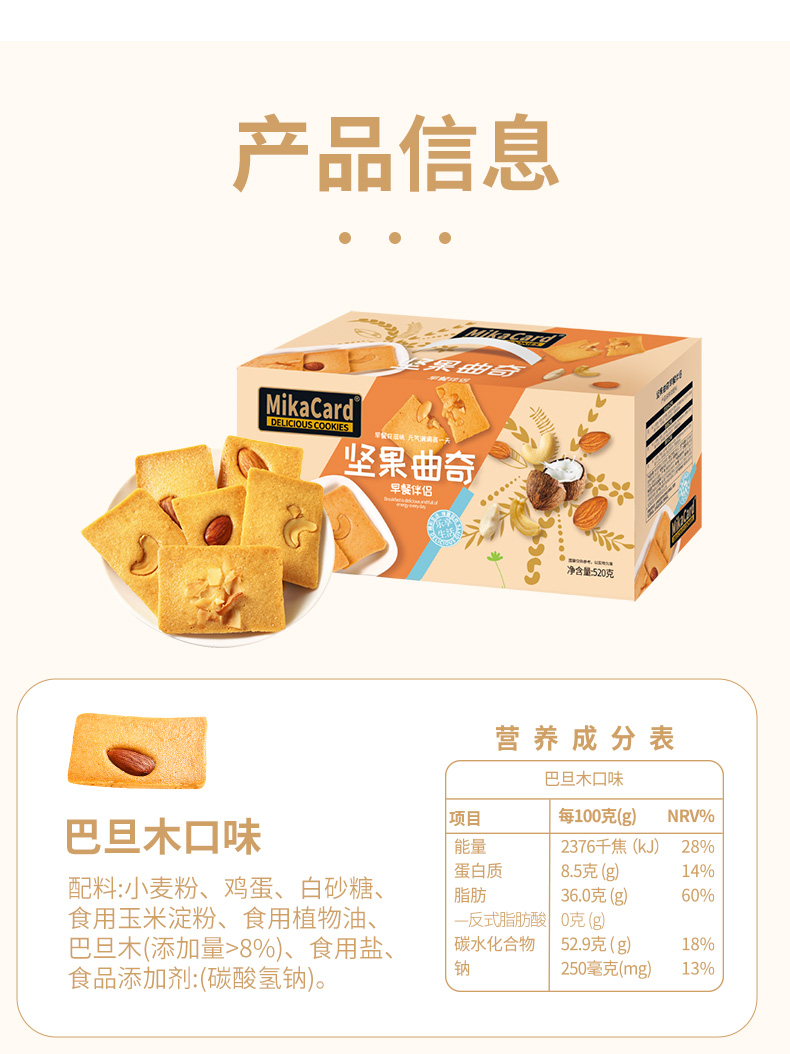 商品名称:天生好果 MiKACARD 坚果曲奇520克 6957292907873 偏远另加运费