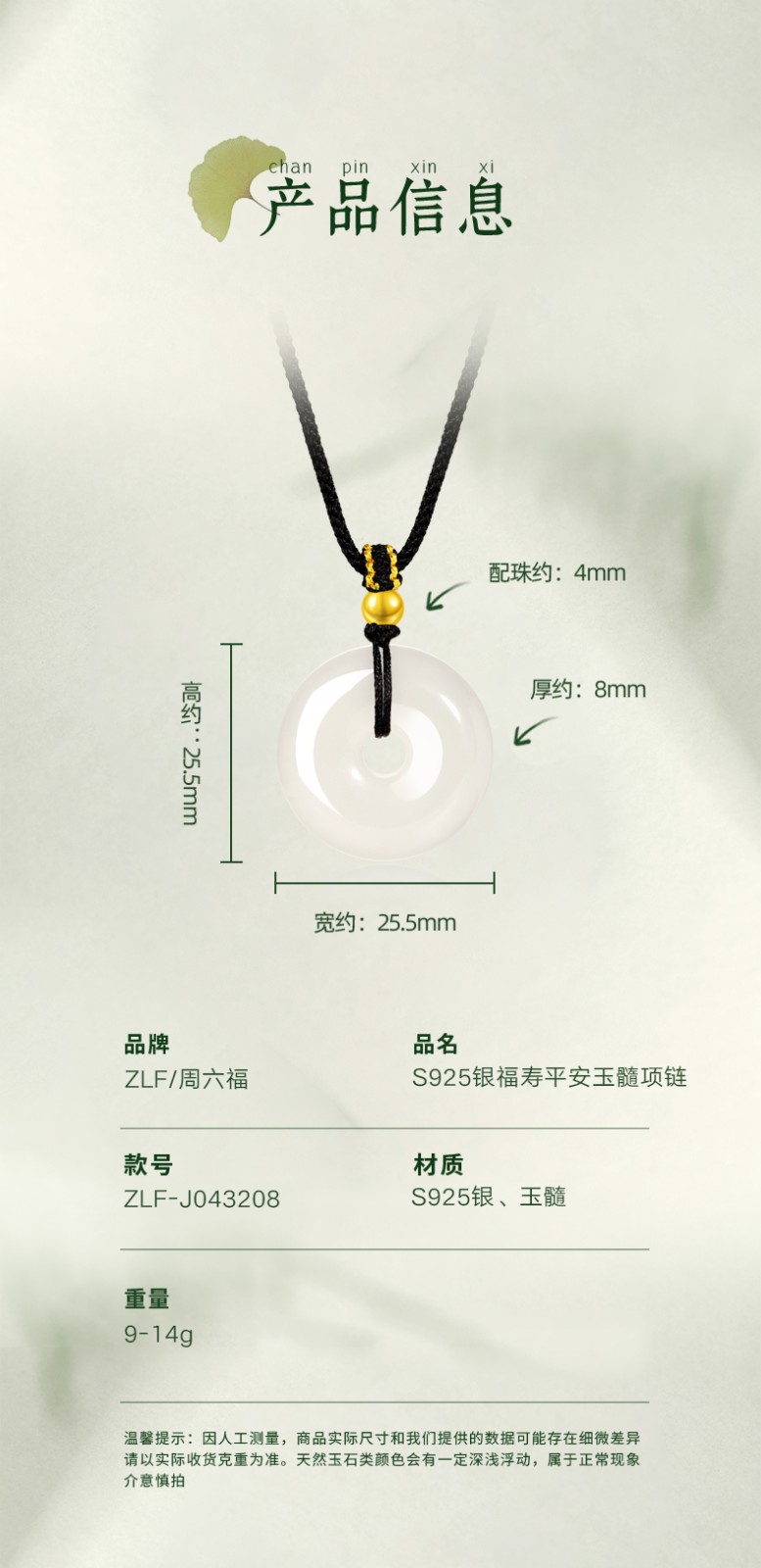 周六福S925银福寿平安玉髓项链ZLF-J043208