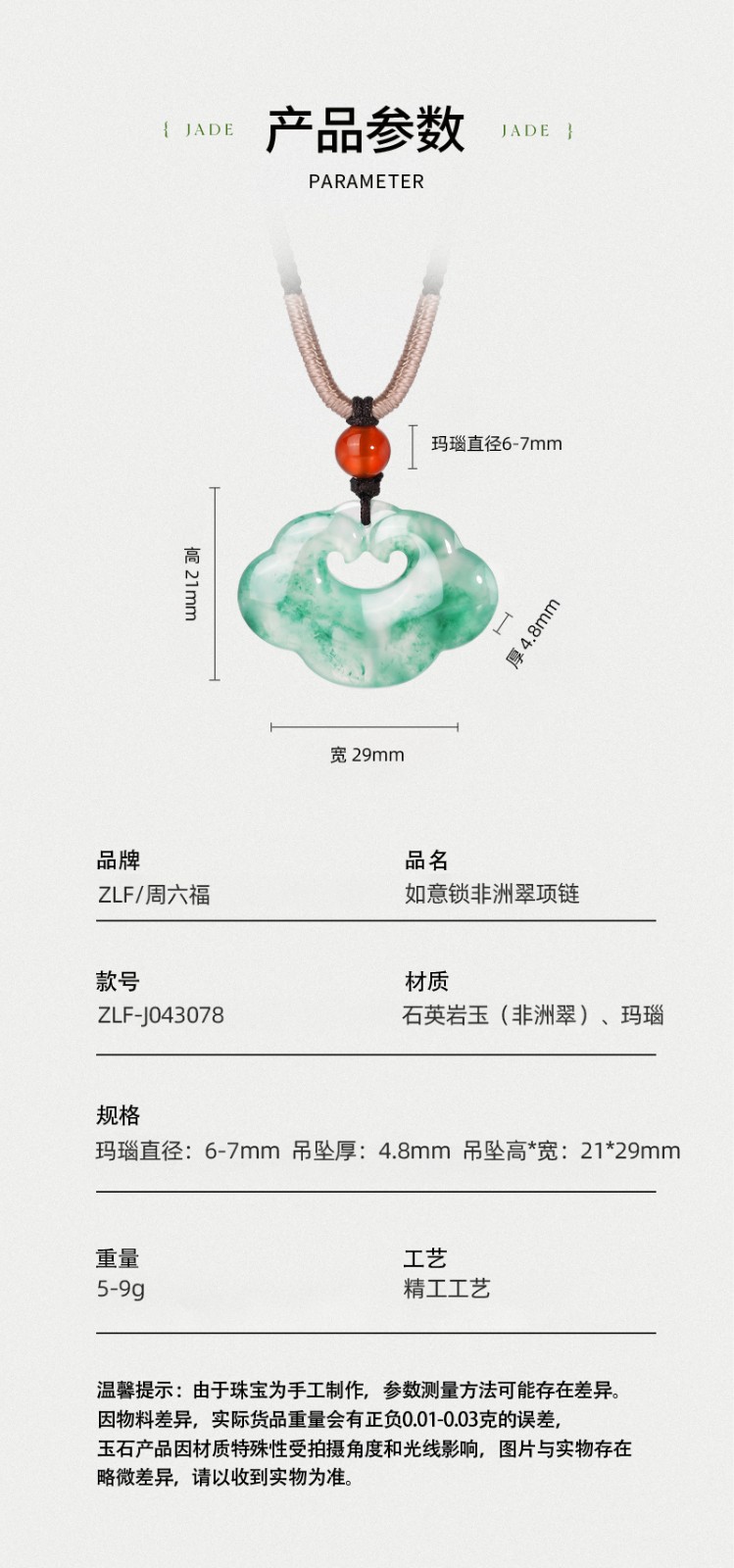 商品名称:周六福如意锁非洲翠项链ZLF-J043078