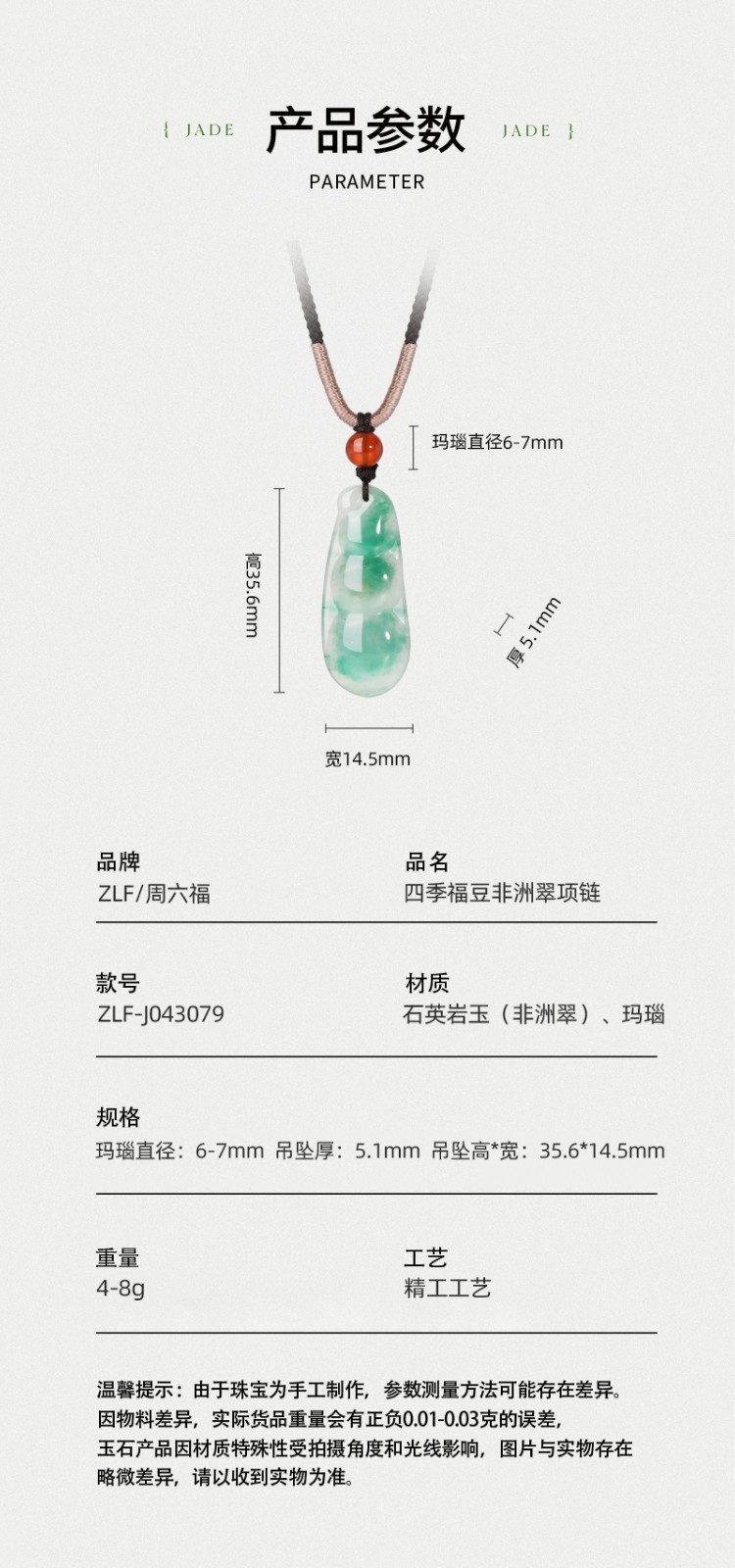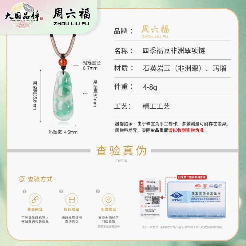 商品名称:周六福四季福豆非洲翠项链ZLF-J043079