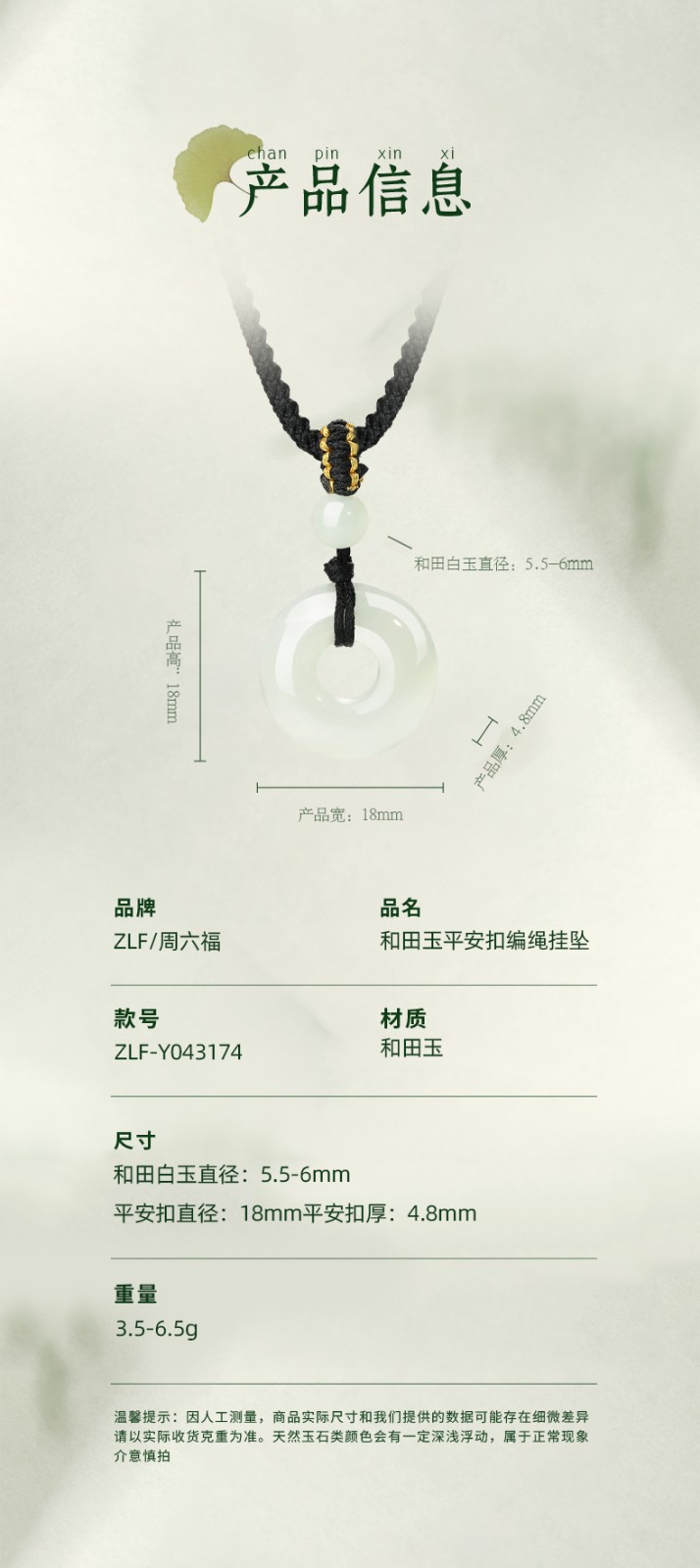 商品名称:周六福和田玉平安扣编绳挂坠ZLF-Y043174
