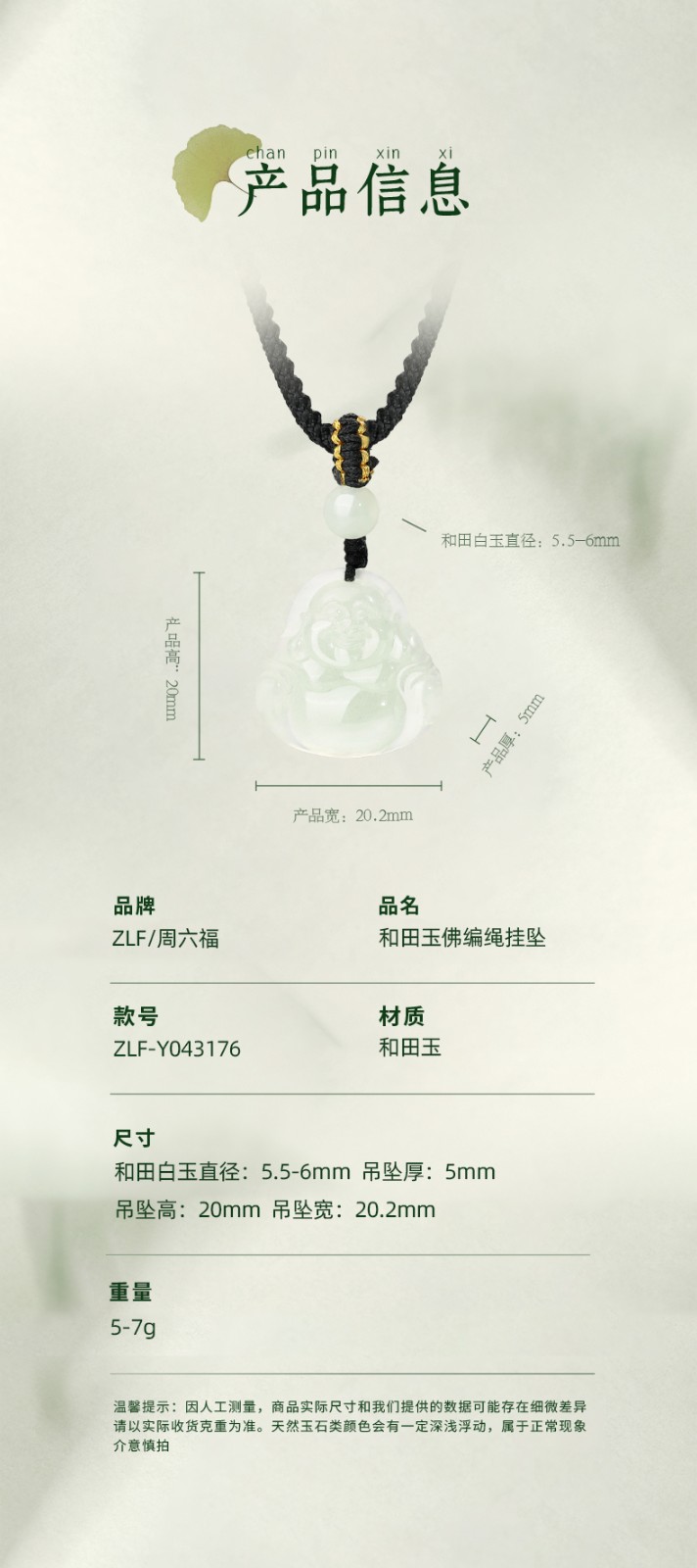 商品名称:周六福和田玉佛编绳挂坠ZLF-Y043176