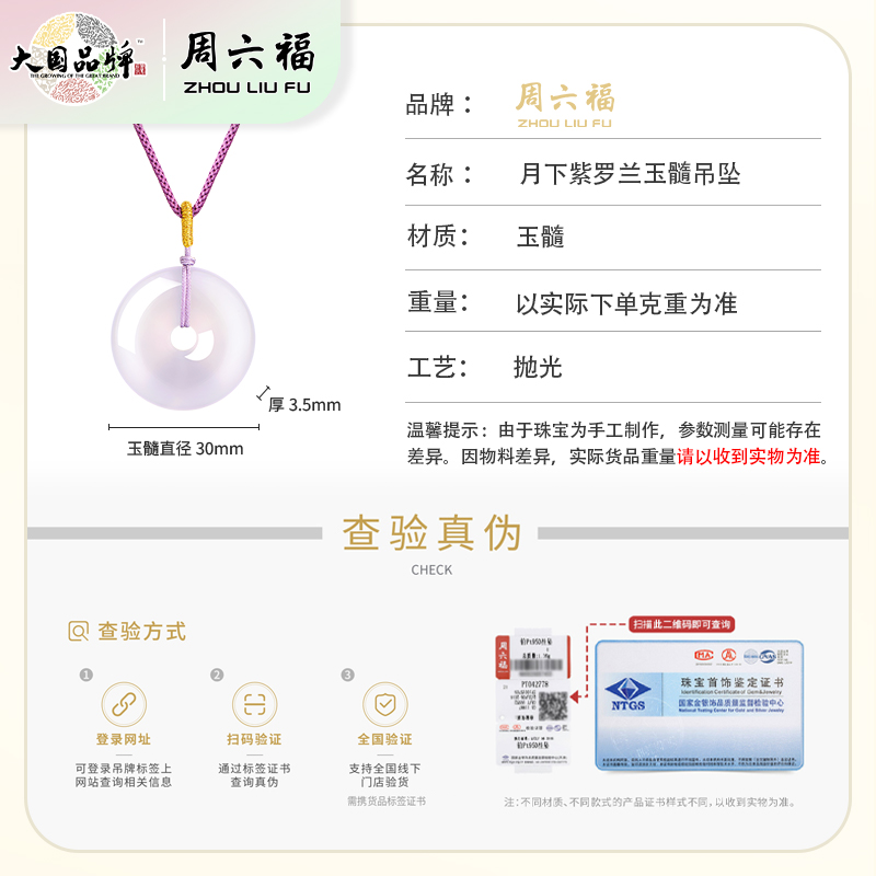 商品名称:周六福月下紫罗兰玉髓吊坠ZLFJ042697