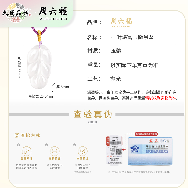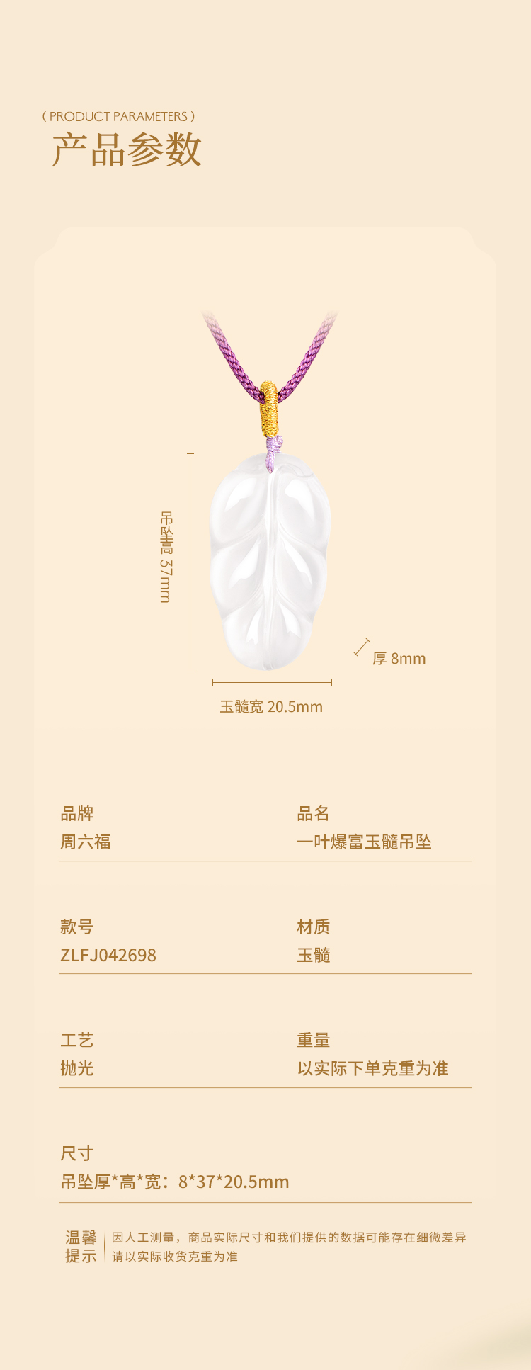 周六福一叶爆富玉髓吊坠ZLFJ042698