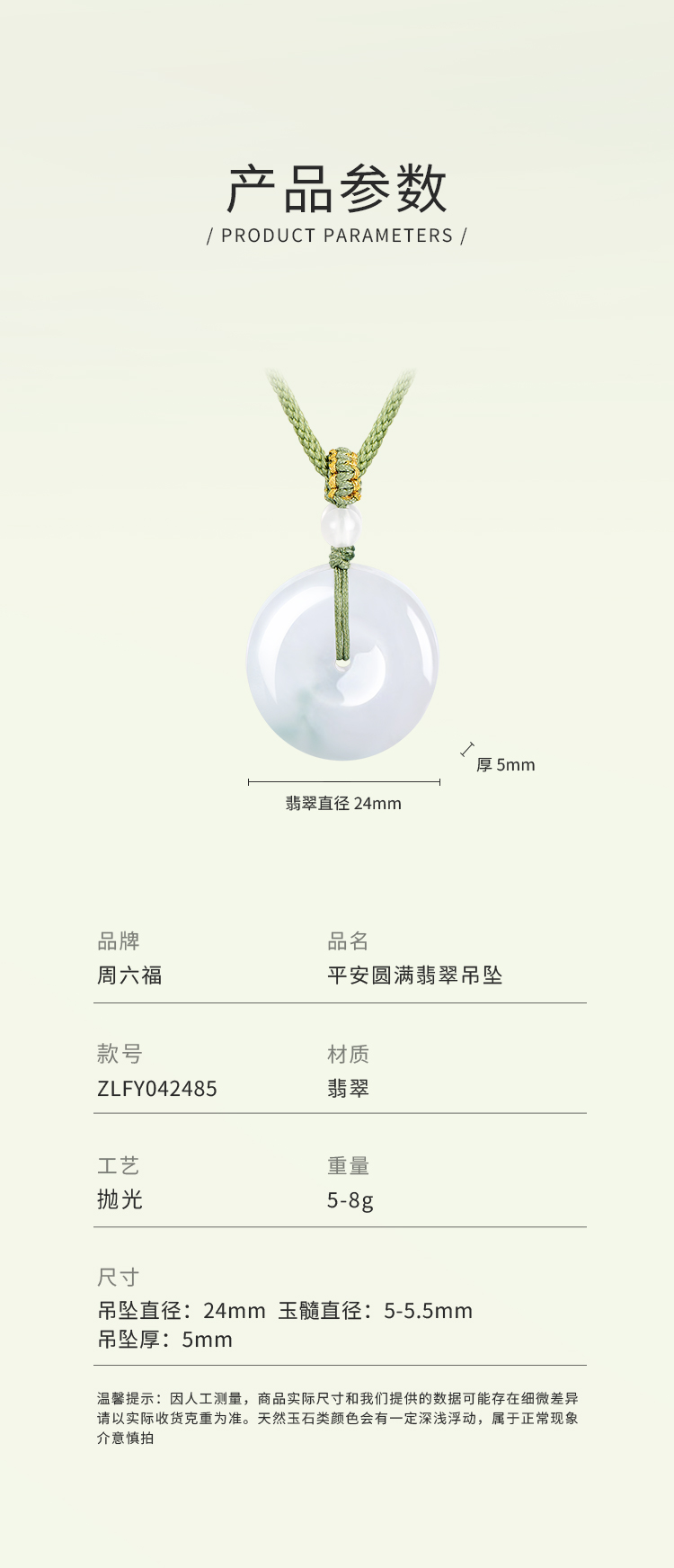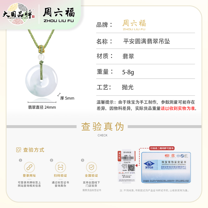 商品名称:周六福平安圆满翡翠吊坠ZLFY042485
