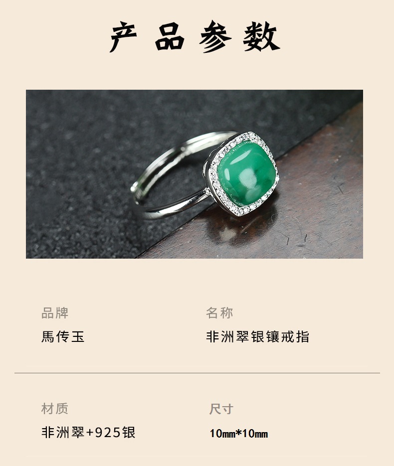 商品名称:馬传玉非洲翠银镶戒指MCY172