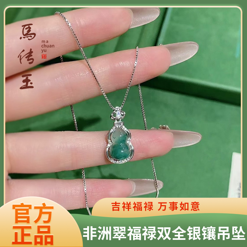 商品名称:馬传玉非洲翠福禄双全银镶吊坠(送银链)MCY175