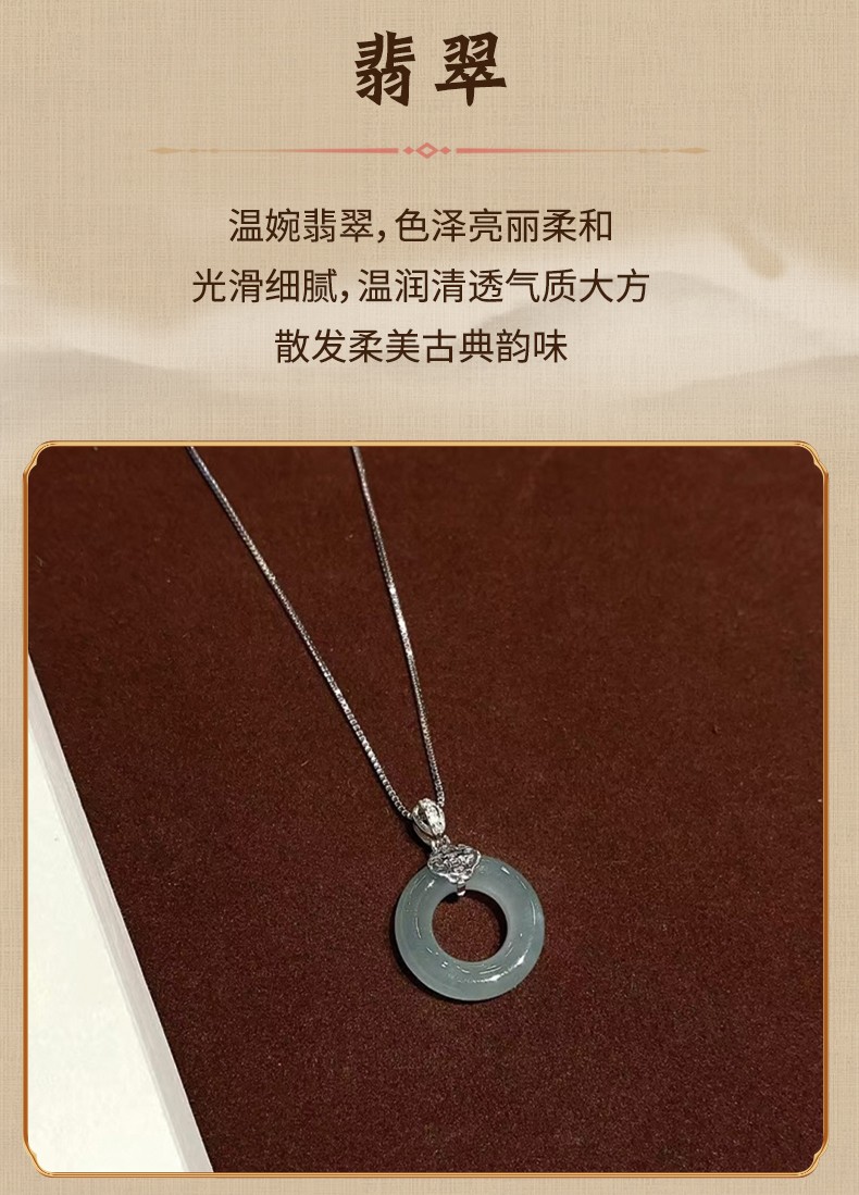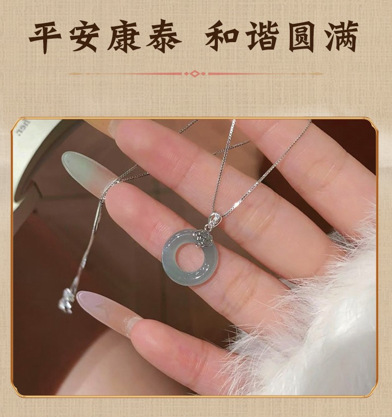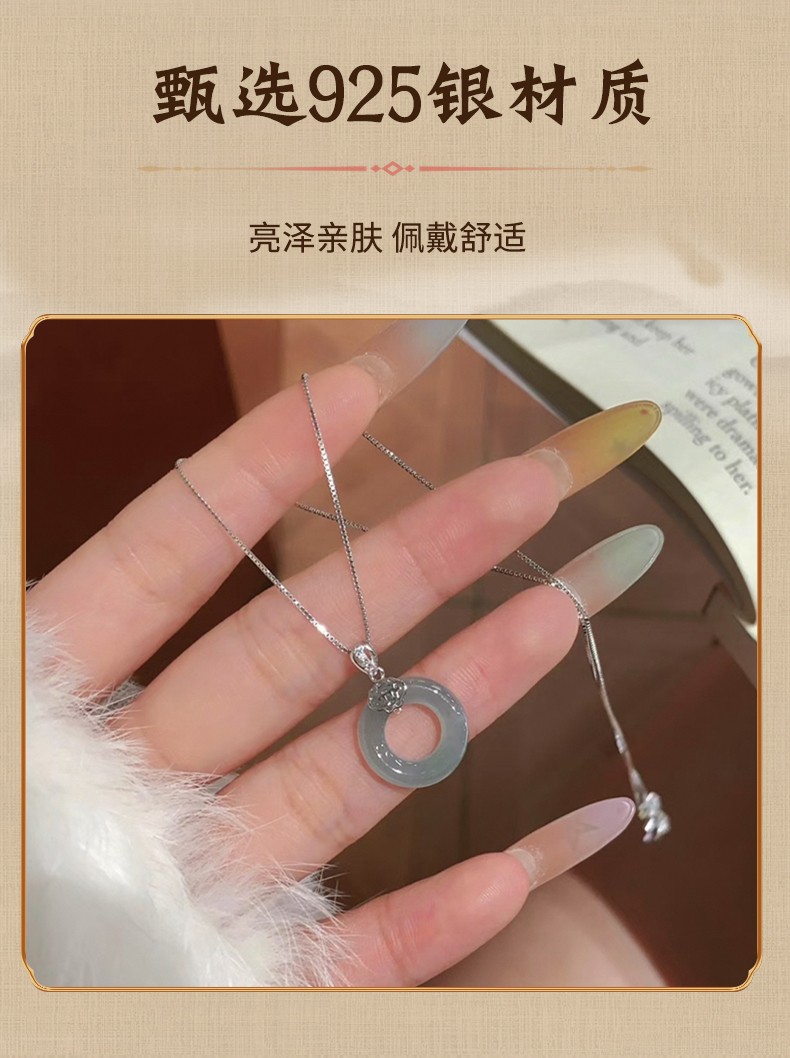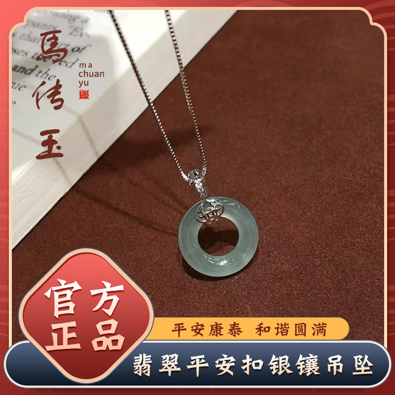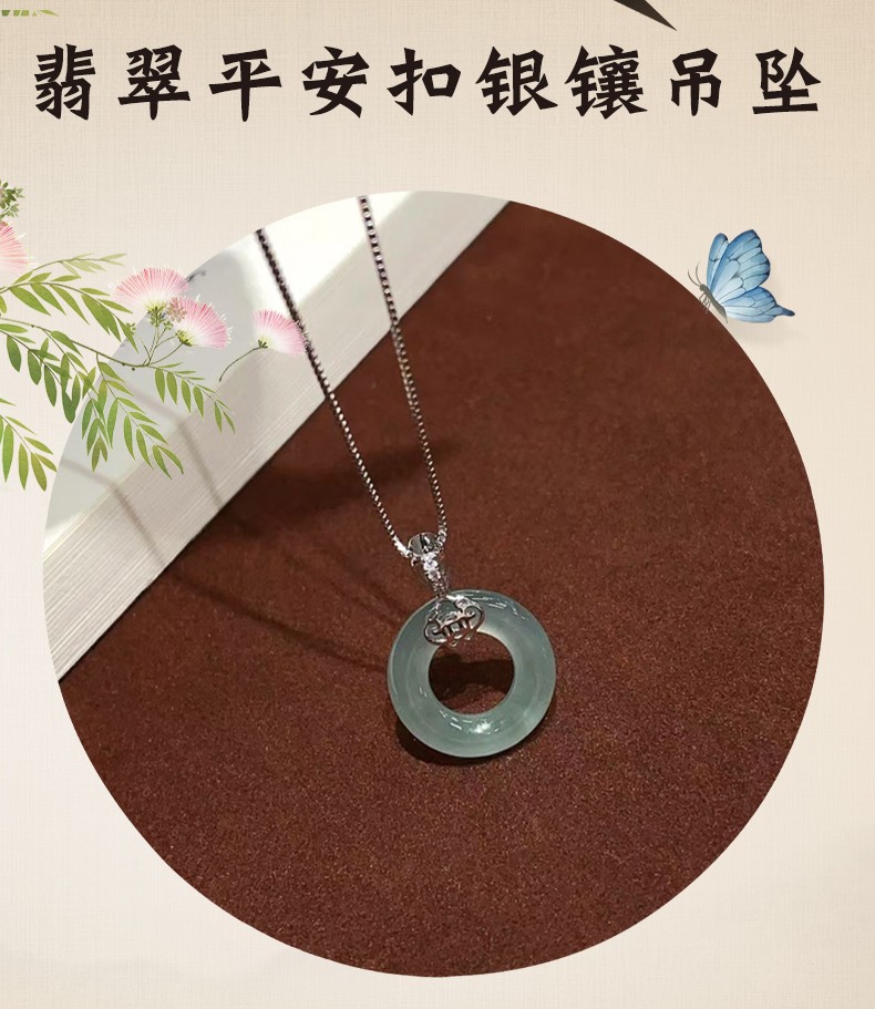 商品名称:馬传玉翡翠平安扣银镶吊坠(送银链)MCY176