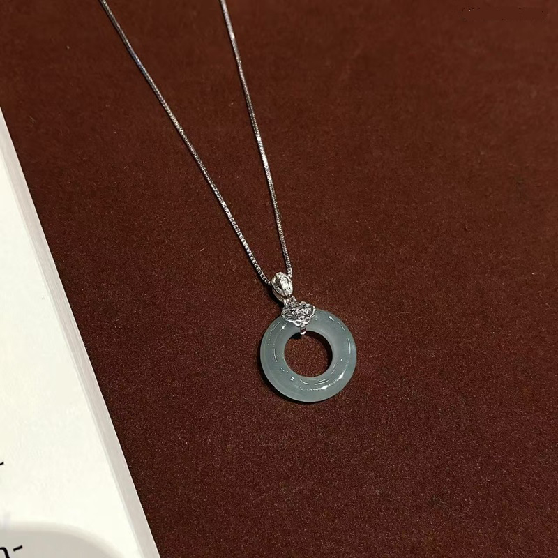 馬传玉翡翠平安扣银镶吊坠(送银链)MCY176