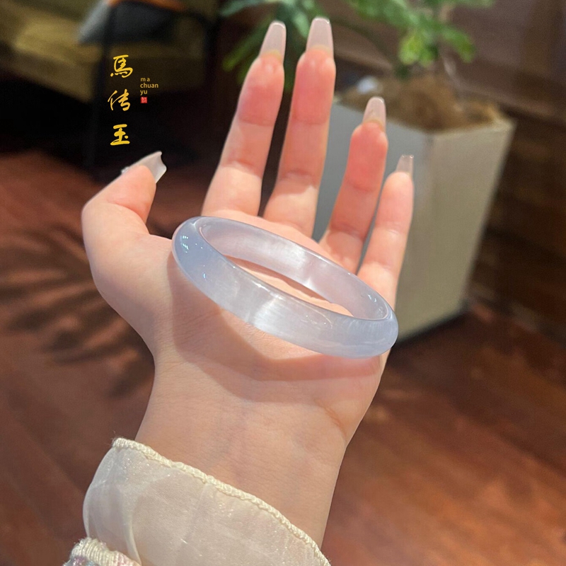 商品名称:馬传玉冰冰蓝蓝猫眼手镯MCY178,下单备注圈口大小56-60