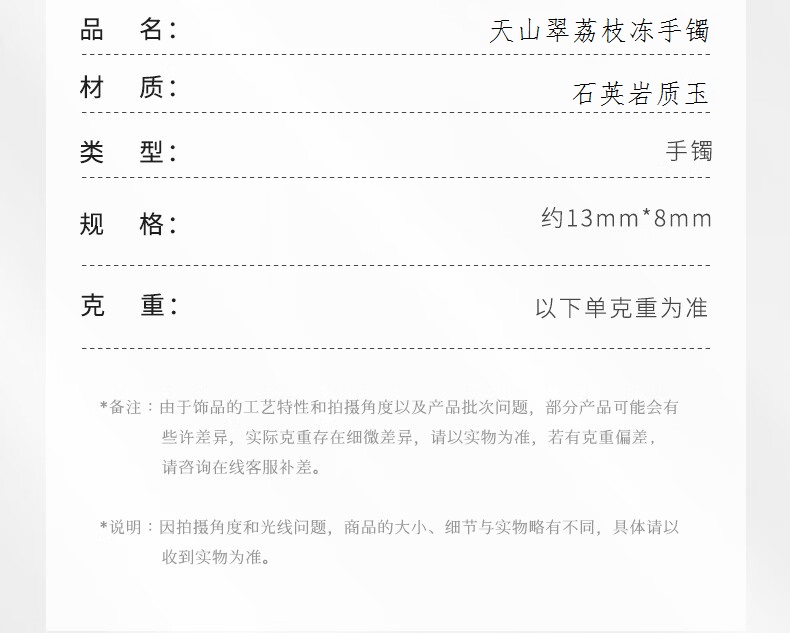 商品名称:馬传玉馬传玉天山翠荔枝冻手镯MCY180,下单备注圈口大小56-60