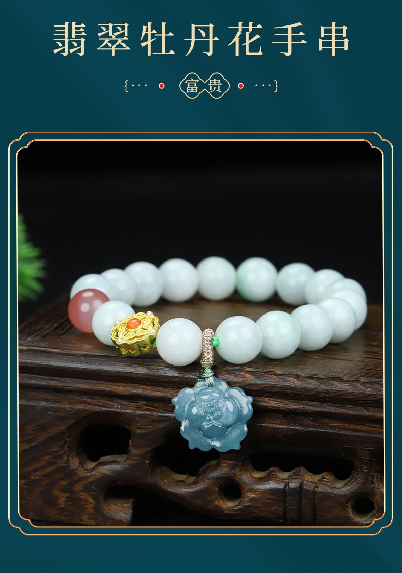 商品名称:馬传玉翡翠牡丹花手串MCY184