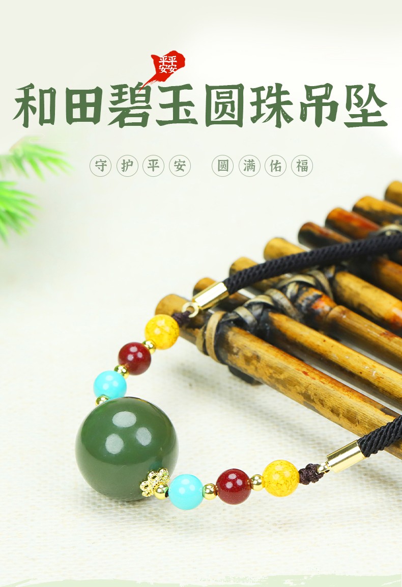 商品名称:馬传玉和田碧玉圆珠吊坠14mmMCY188