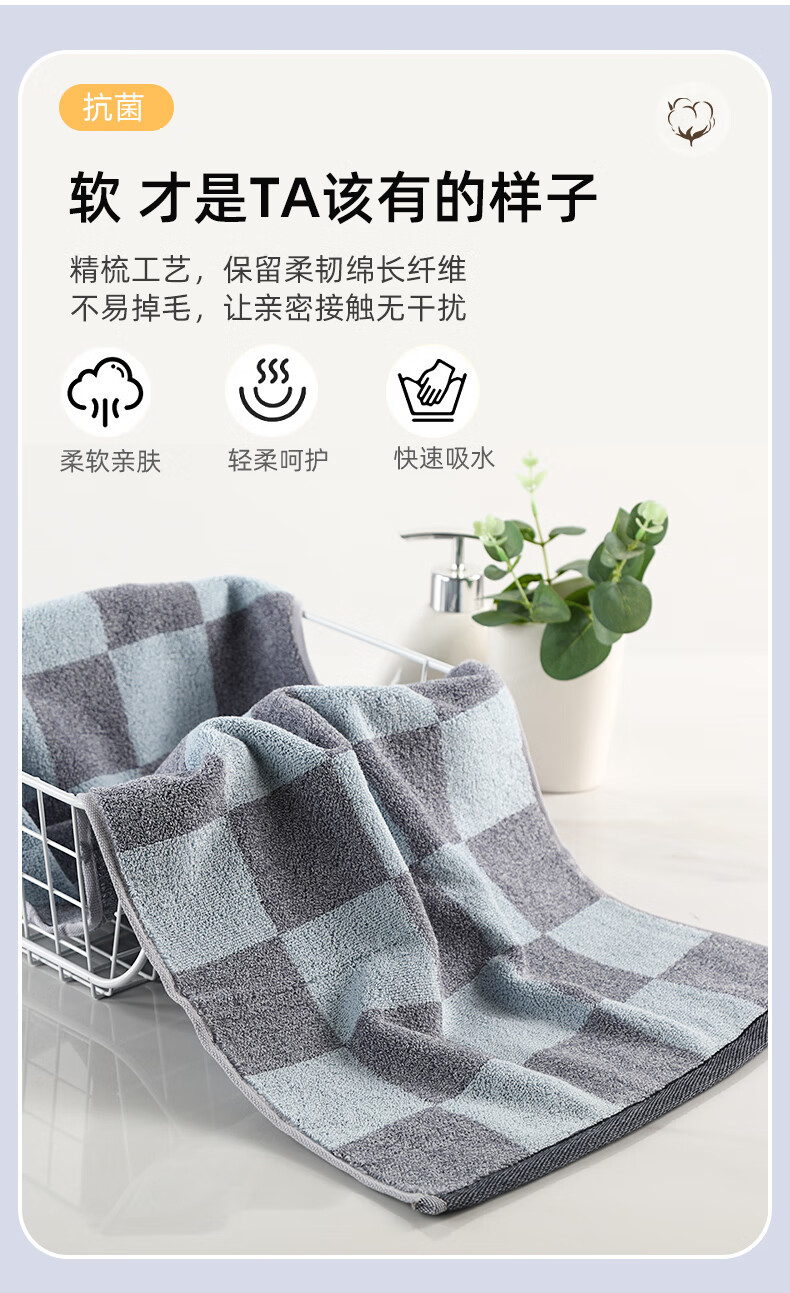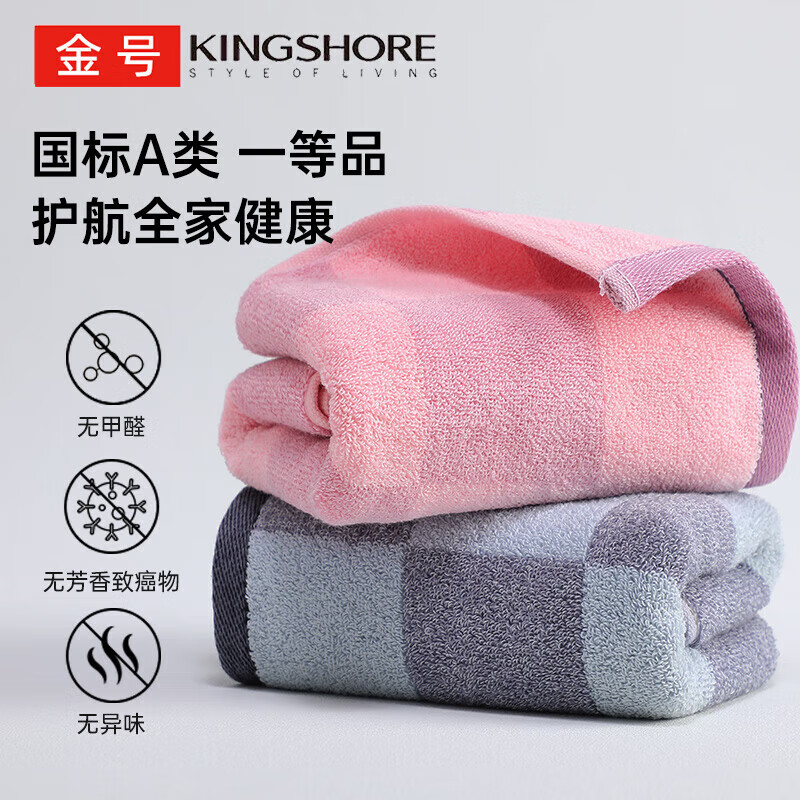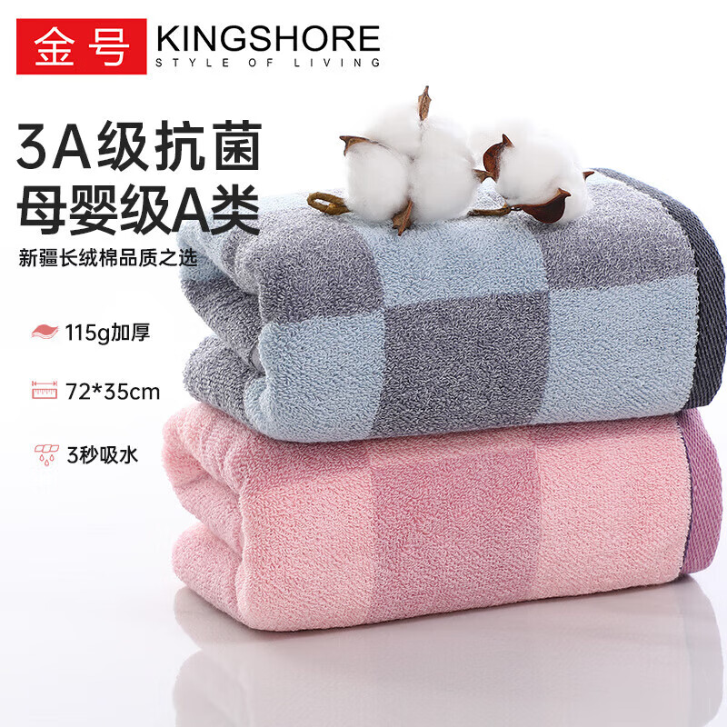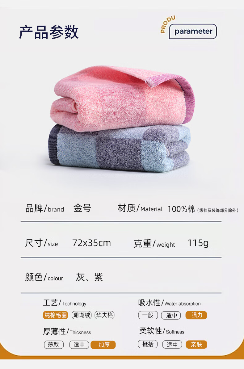商品名称:【集采8】金号毛巾 115g3A抗菌成人男士纯棉快速吸水洗脸面巾 2条72*35cm灰+紫